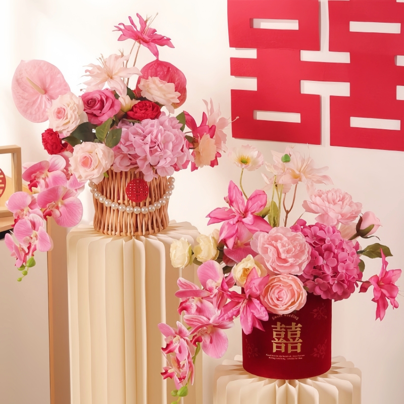 结婚浪漫婚礼布置花艺客厅卧室床头仿真花婚房桌面花束装饰摆件