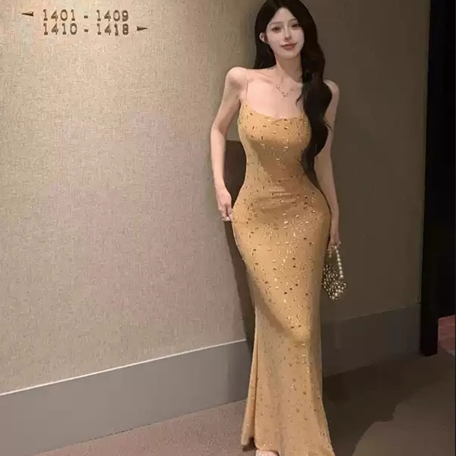 亮闪闪水钻吊带连衣裙女夏季纯欲性感收腰短裙显身材紧身包臀裙子