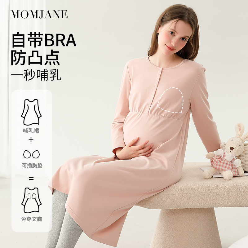 医院待产裙孕妇纯棉秋冬哺乳睡裙月子服带胸垫连衣裙生产服进产房
