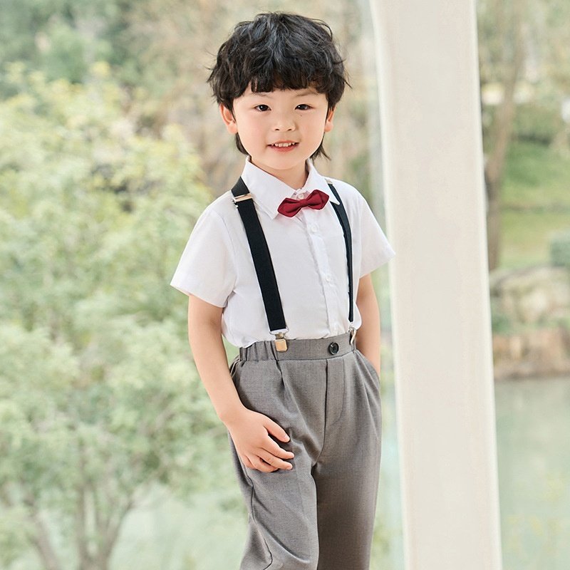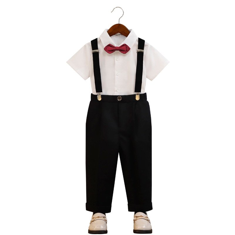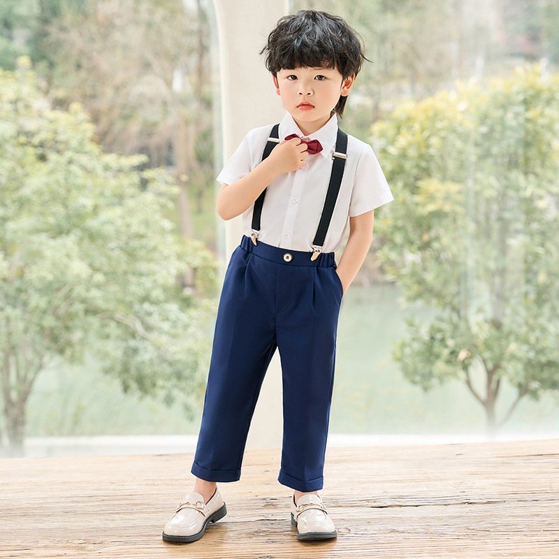 儿童背带裤套装夏季新款宝宝周岁生日礼服男童西装主持演出摄影服