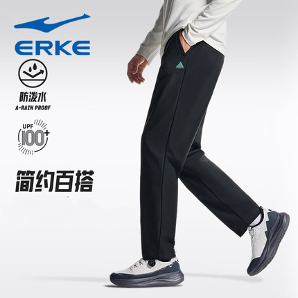 鸿星尔克男士防泼水运动长裤黑色直筒针织训练裤简约百搭