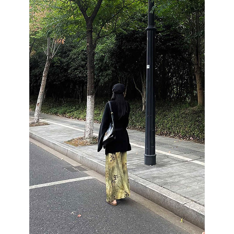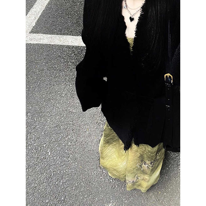 大码胖MM慵懒风穿搭一整套女2025春秋季宽松黑色毛衣外套半裙套装