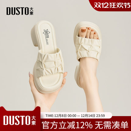 大东时装拖鞋女鞋2025夏季新款时尚休闲粗跟中跟方头套脚X3686
