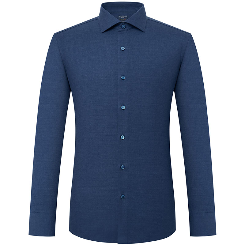 恺米切商务休闲羊毛桑蚕丝长袖衬衫男士时尚潮流宝蓝色温莎领衬衣