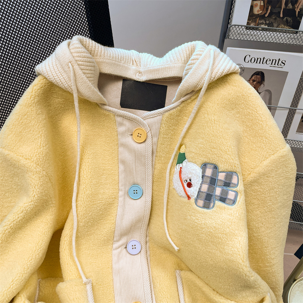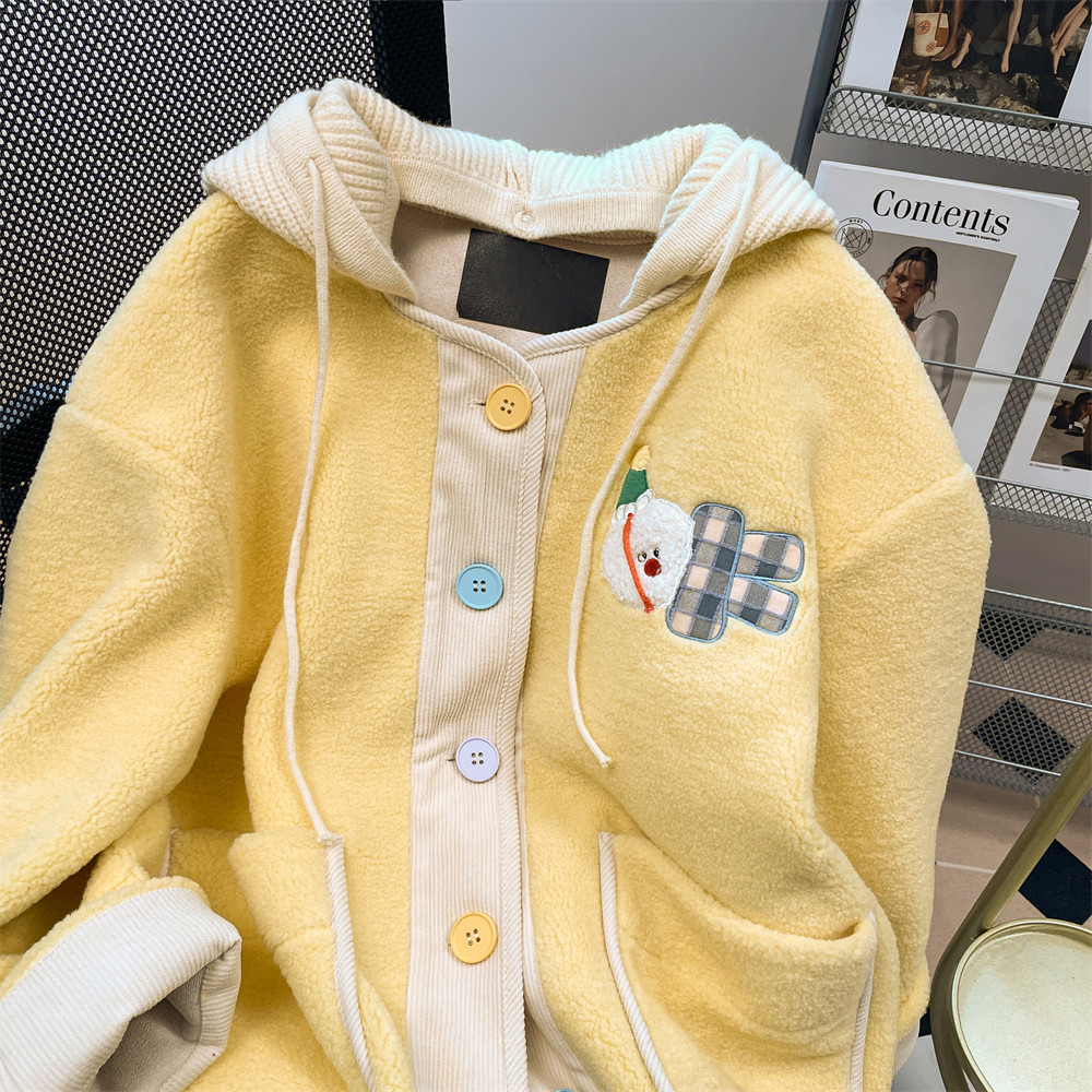 胖mm韩系可爱刺绣摇粒绒棉服女