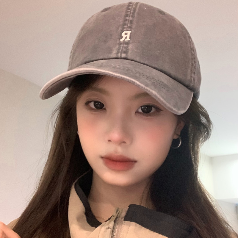 鸭舌帽子女2025新款春秋R字母水洗做旧个性百搭显脸小韩版棒球帽