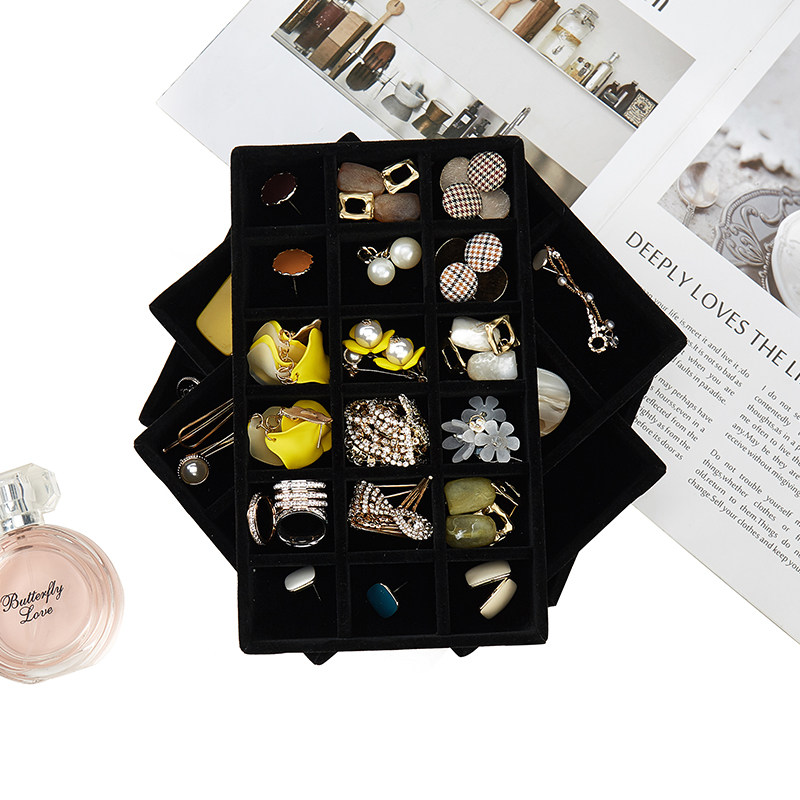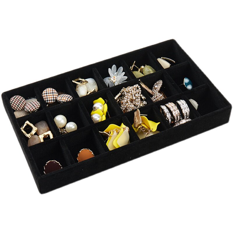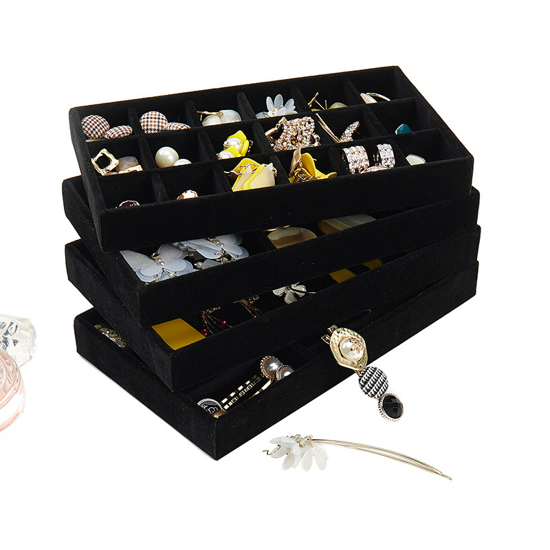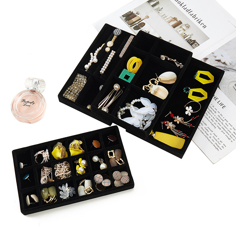 黑色首饰盒灰色植绒绒布盒耳环耳饰耳首饰展示架托盘珠宝首饰收纳