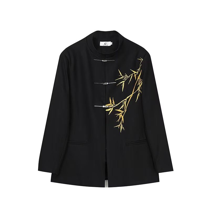 新中式刺绣金竹中山装套装西装