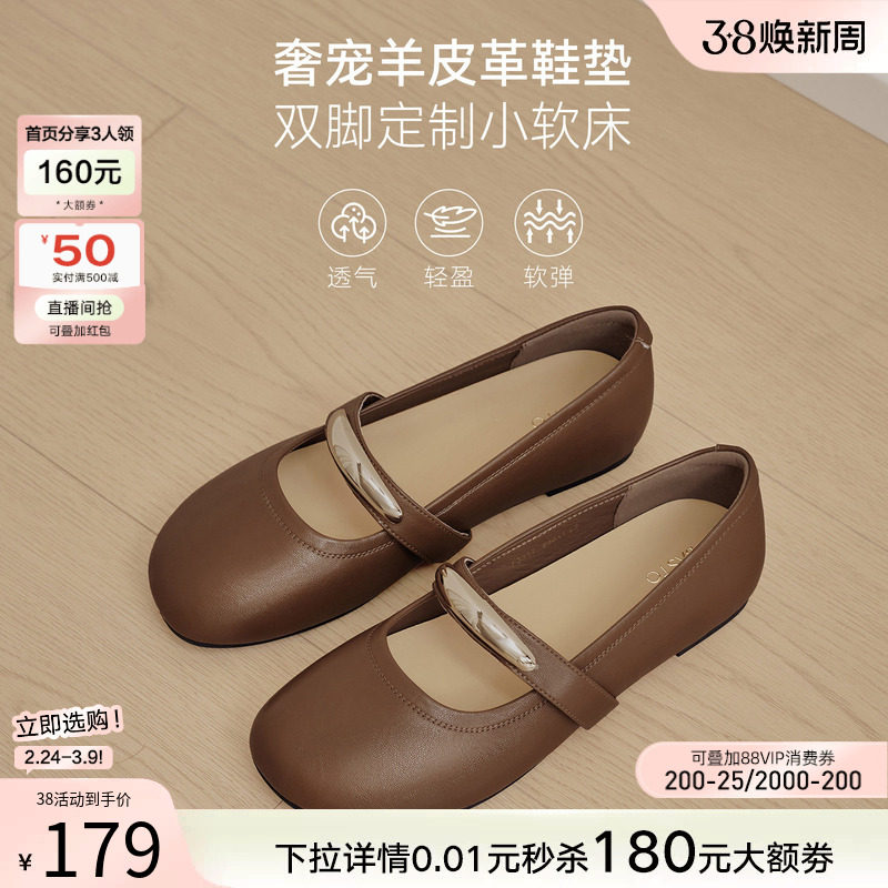 百思图秋季新款商场同款玛丽珍鞋小皮鞋浅口女单鞋F3317CQ5