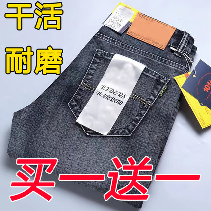 【买一送一】弹力男士牛仔裤直筒宽松大码耐磨休闲工作长裤子男裤