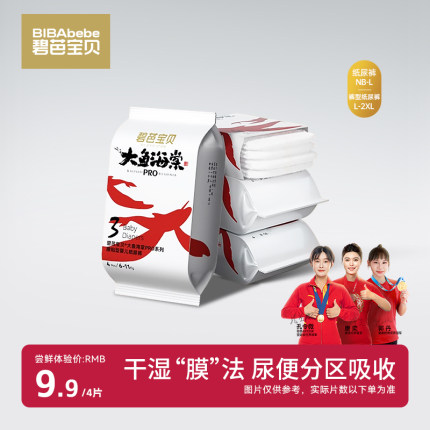 碧芭宝贝大鱼海棠PRO纸尿裤拉拉裤新生儿尿不湿尺码任选试用装4片