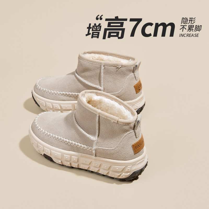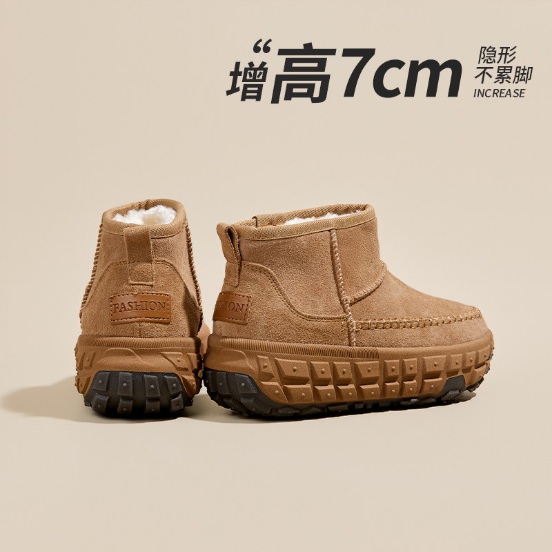 厚底7CM轮胎底雪地靴女2025新款冬季加绒加厚内增高保暖棉鞋短靴