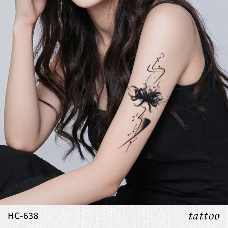 国风水墨繁花草本纹身贴女防水持