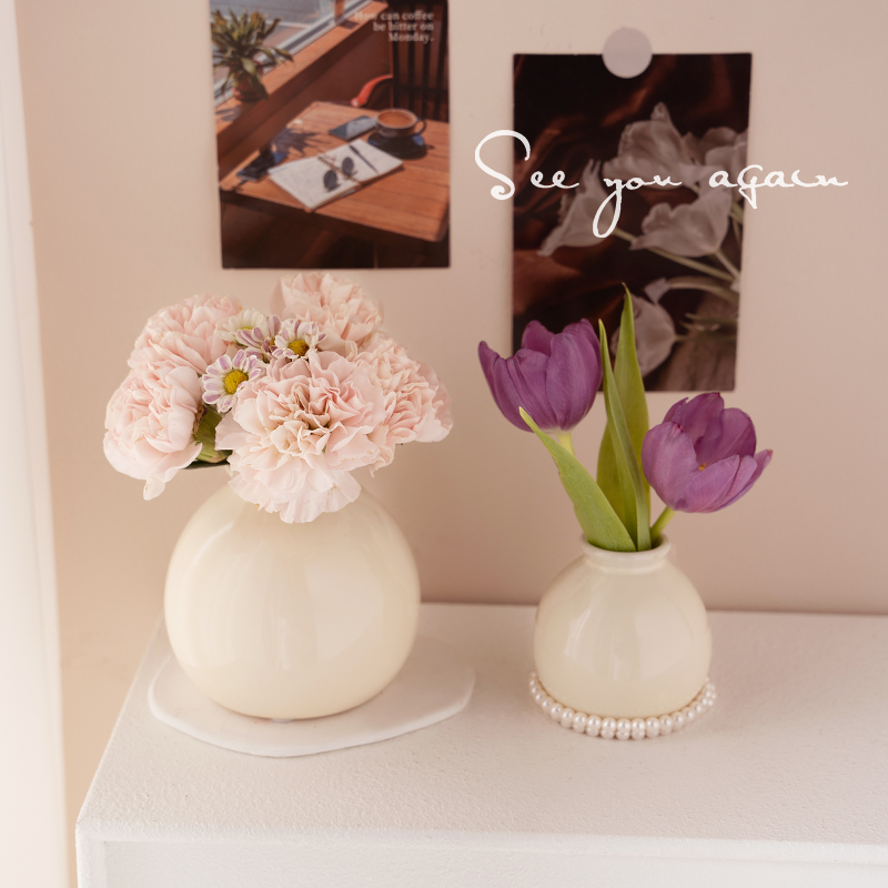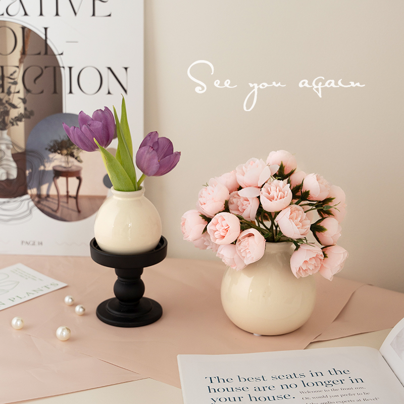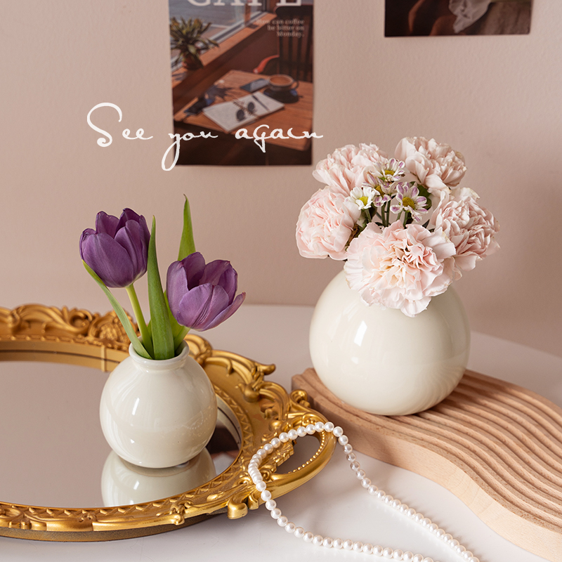 北欧创意迷你陶瓷小花瓶奶油风高级感客厅仿真花插花水培餐桌摆件
