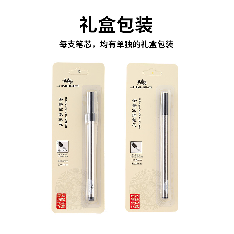 金豪笔芯 金属签字笔水笔替换笔芯黑色0.5mm/0.7mm螺纹头直插头子弹头速干宝珠笔圆珠签字笔中性笔笔芯直液式