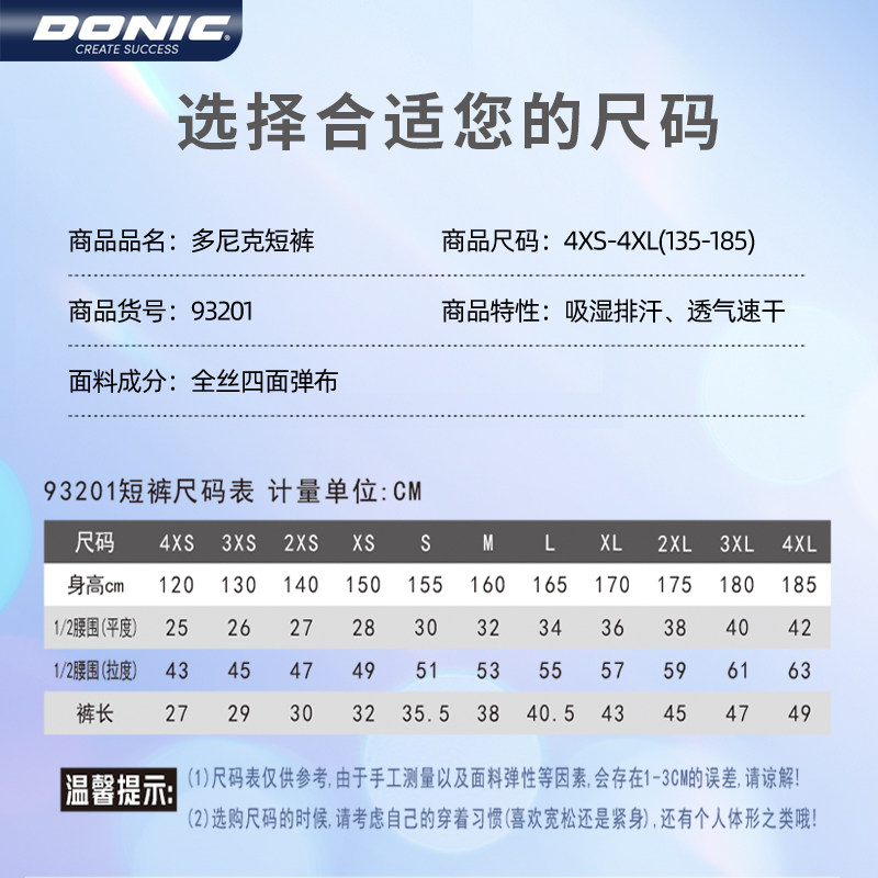 DONIC多尼克乒乓球服装短裤男女款儿童款运动服球裤吸汗透气包邮