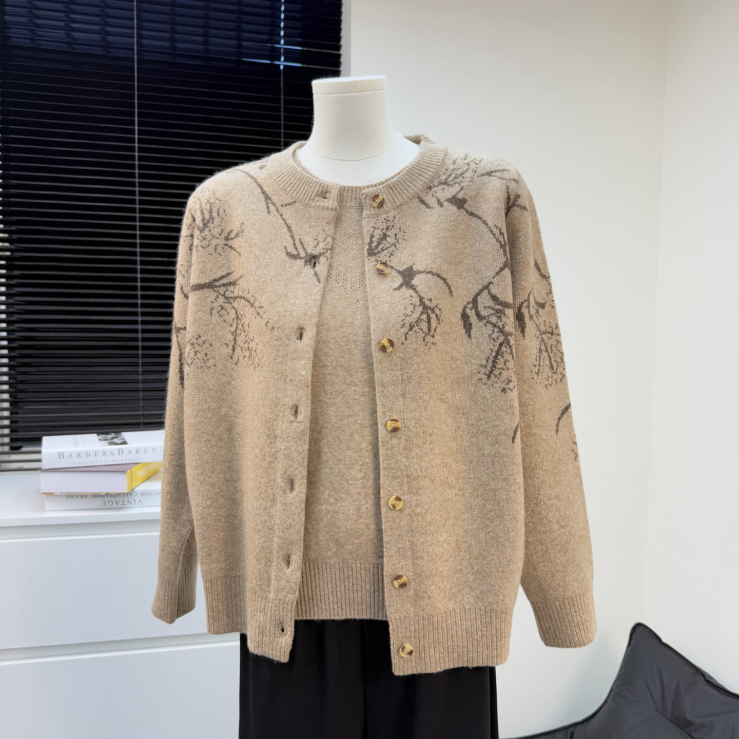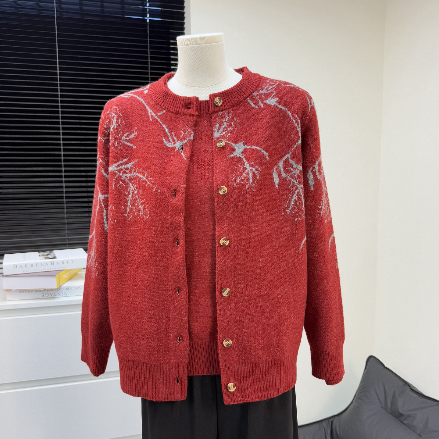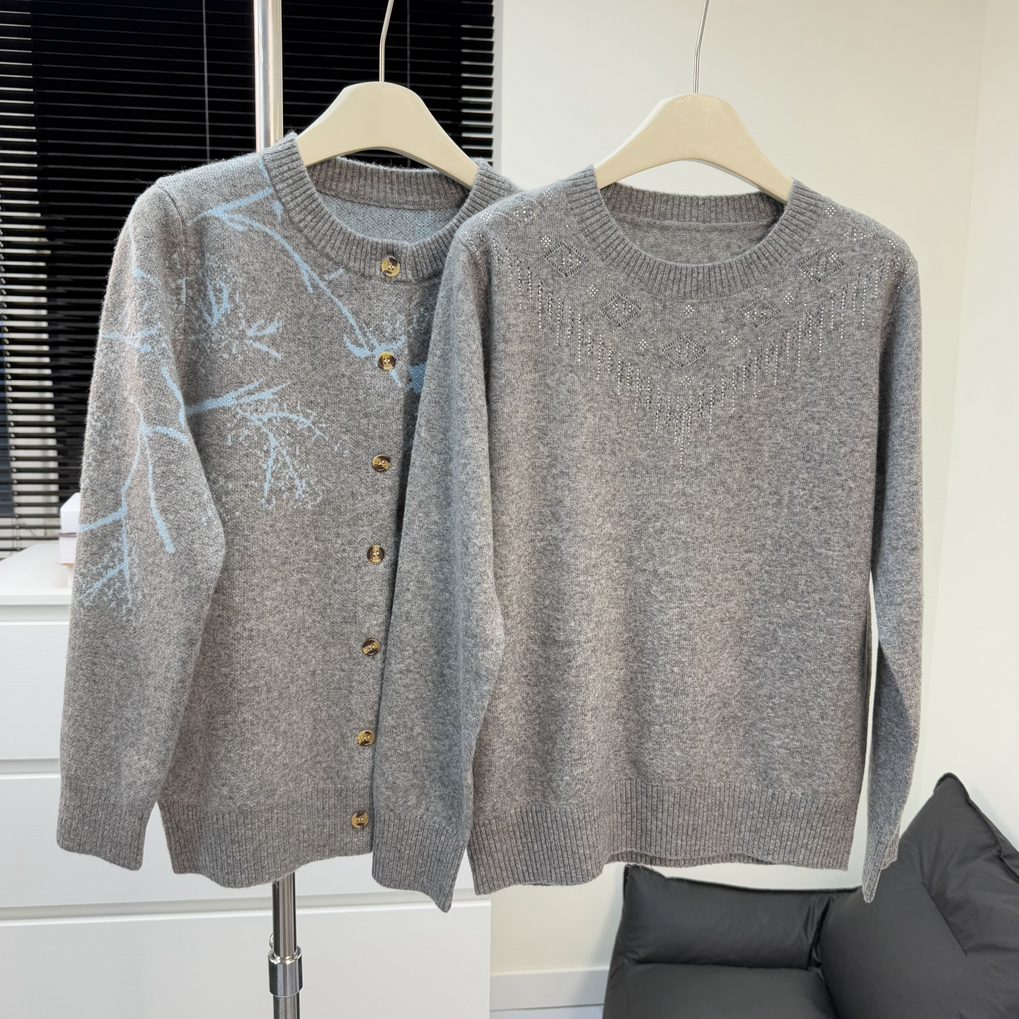 套装中老年宽松妈妈装开衫女秋冬外套长袖打底衫羊毛衫毛衣两件套