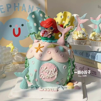 卡通美人鱼公主蛋糕装饰摆件鱼尾巴贝壳儿童生日甜品台烘焙插件