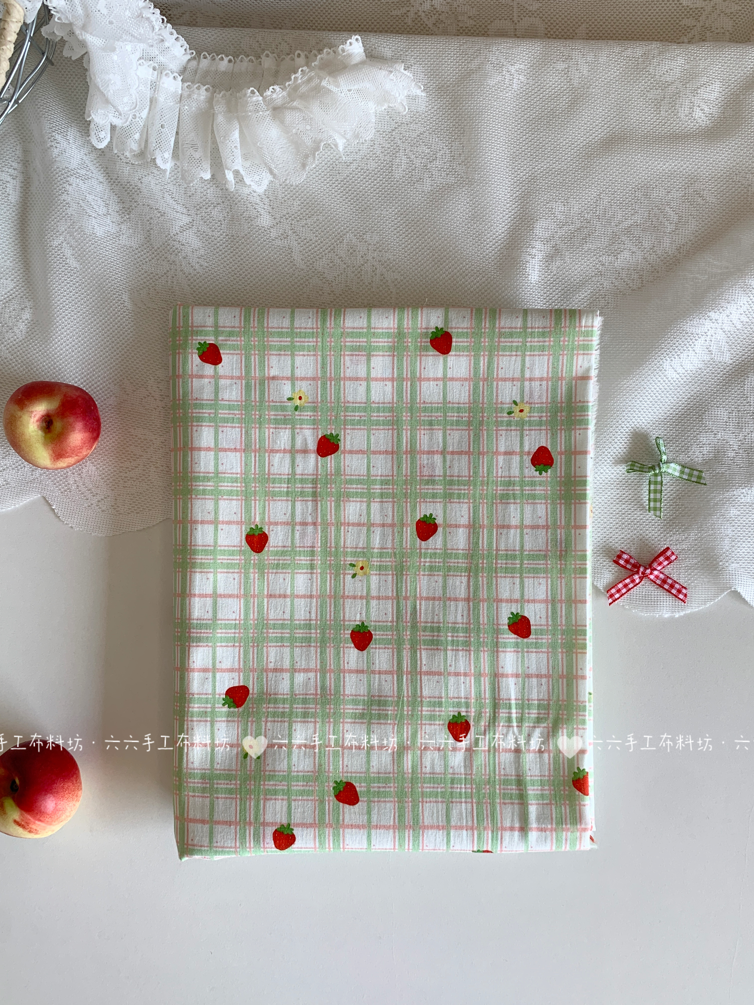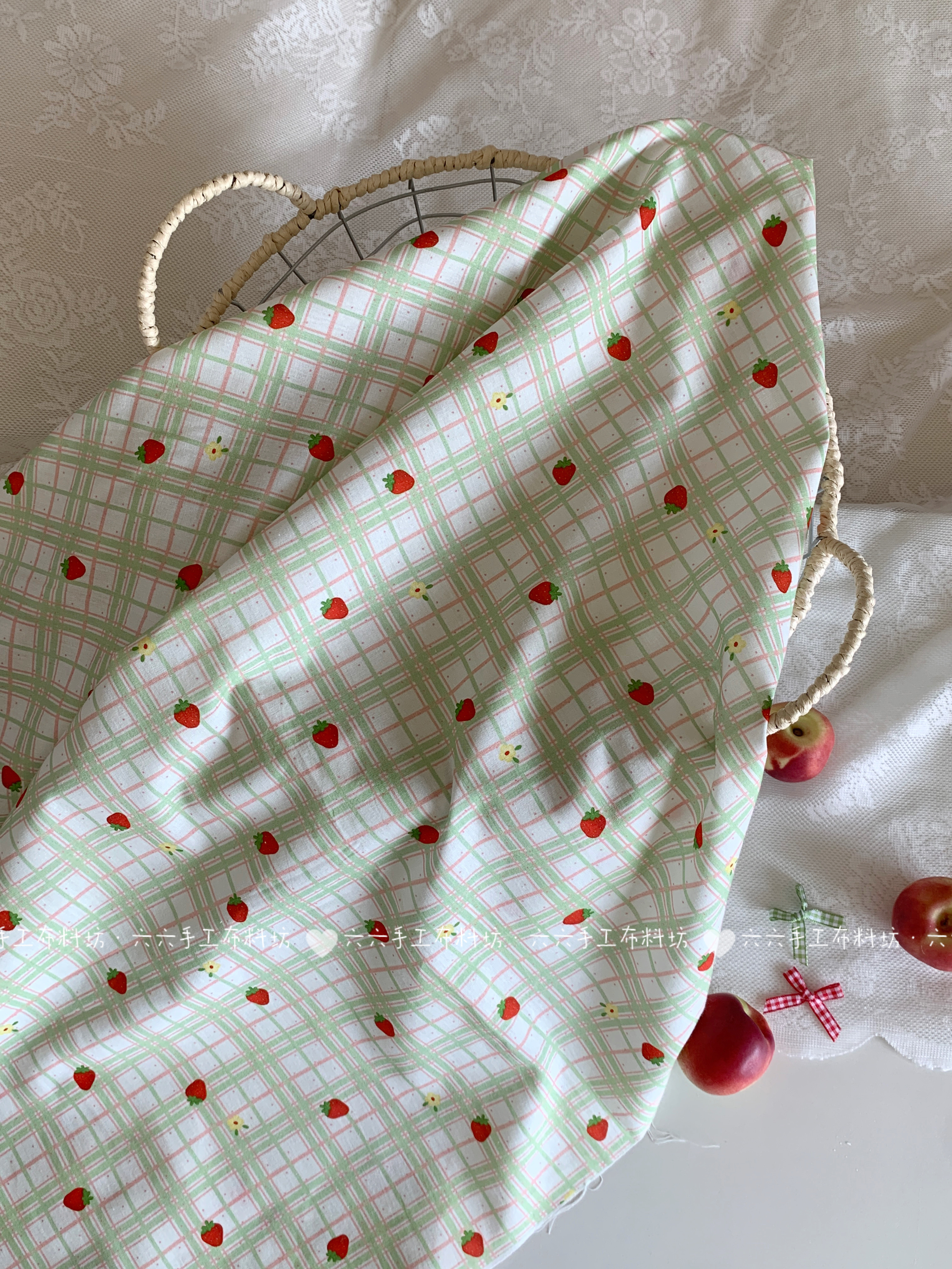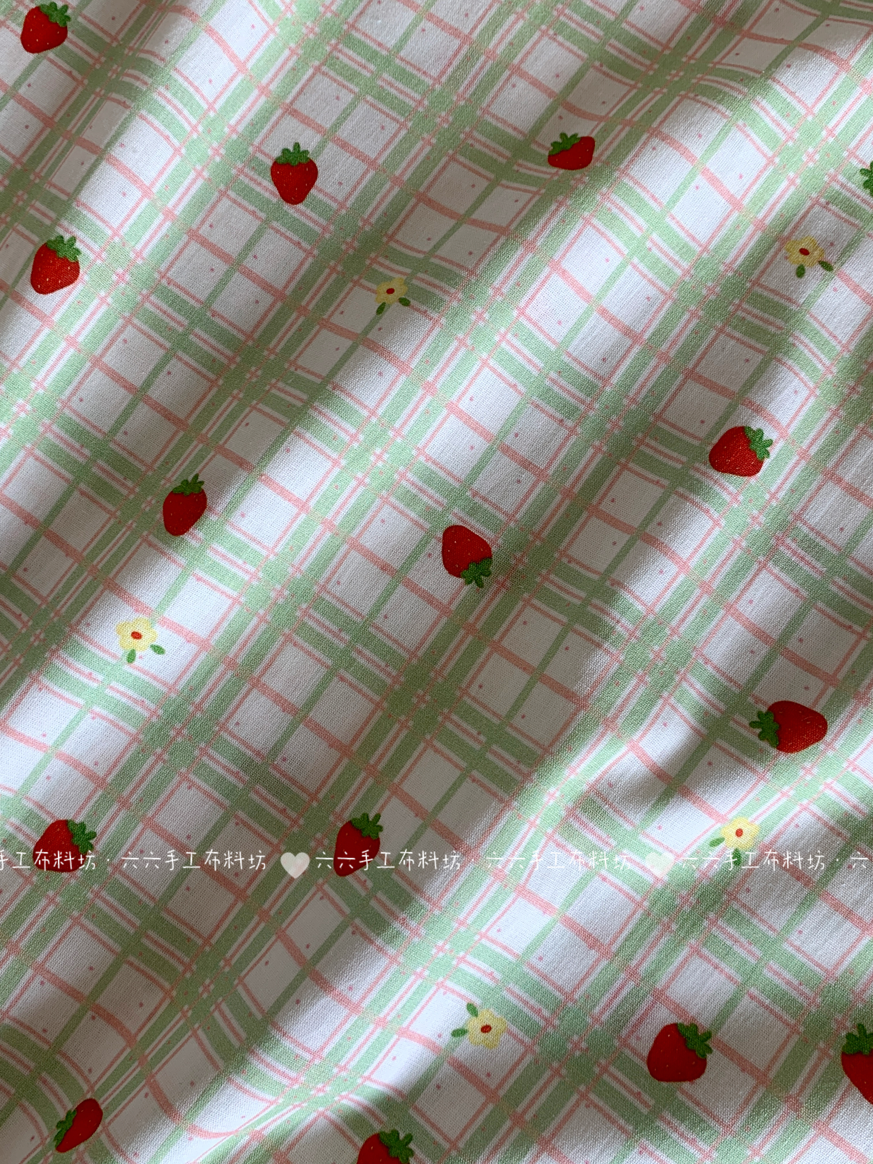 全棉40支印花可爱绿格子花花草莓布料家居服发饰童装裙子diy面料