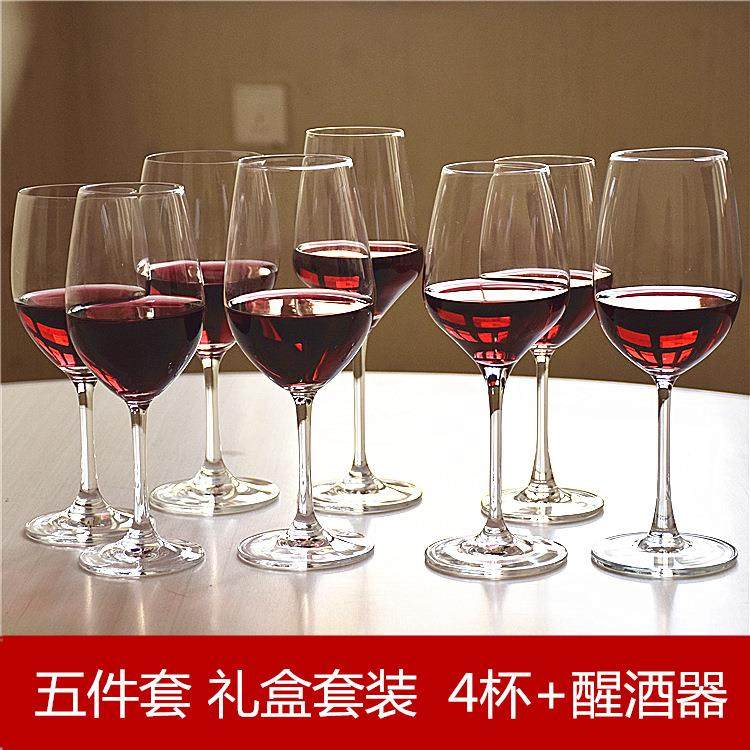 红酒杯玻璃醒酒器五件套高脚杯波尔多酒杯五件套礼盒套装定制