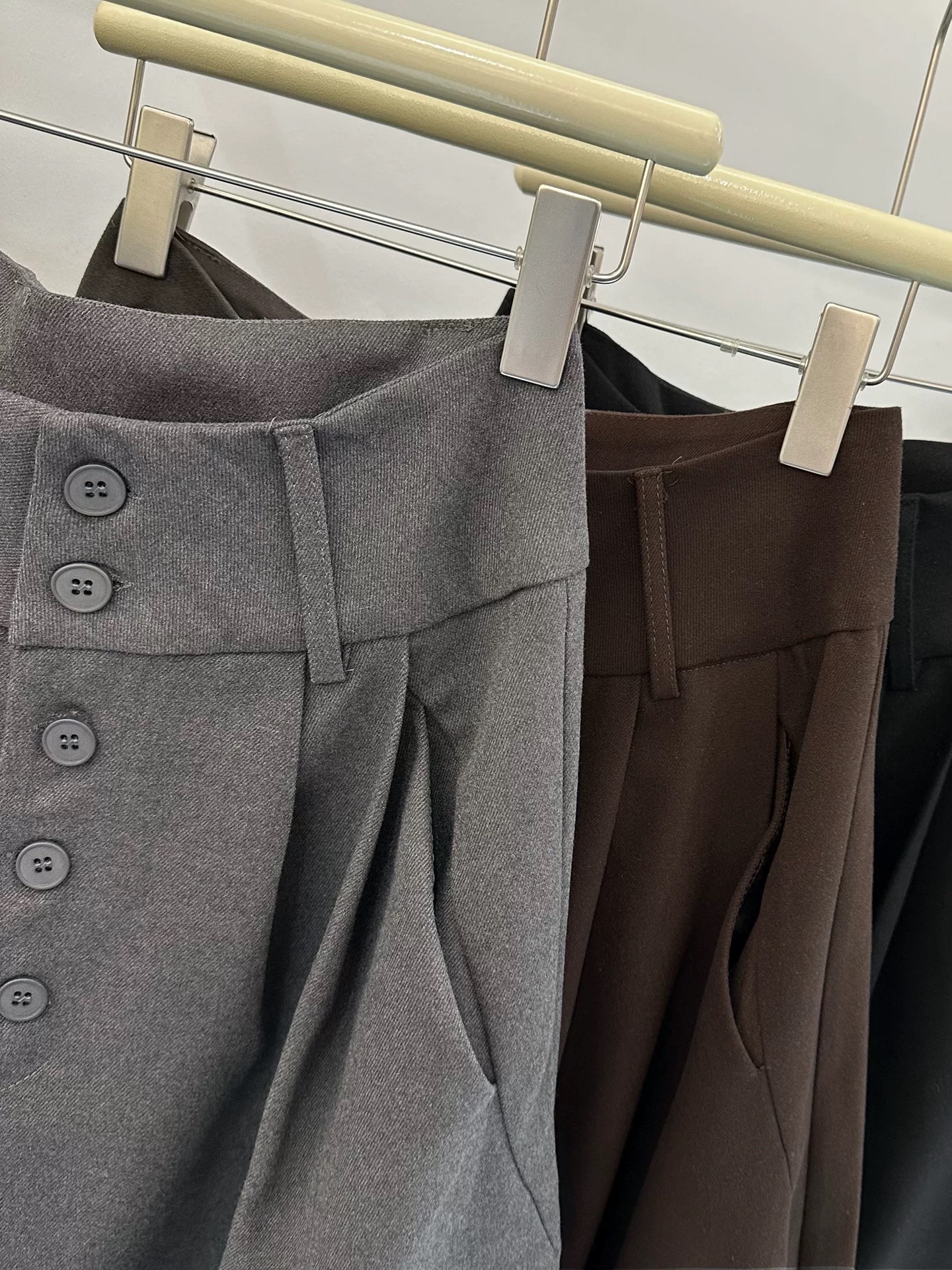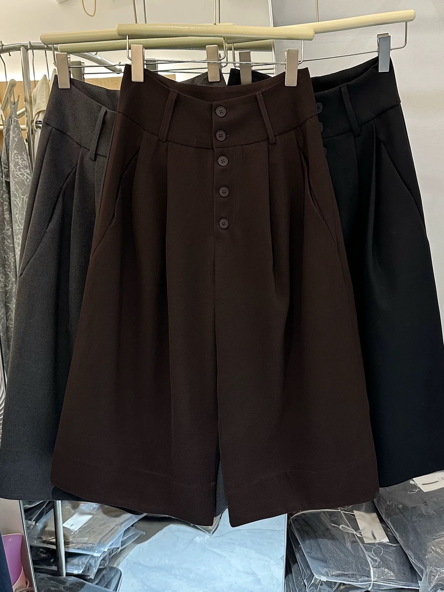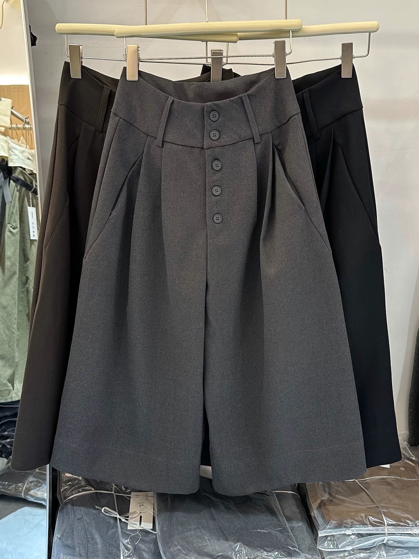 2025秋简约加厚八分裤阔腿七分裤女高腰显瘦一排扣靴裤西装休闲裤