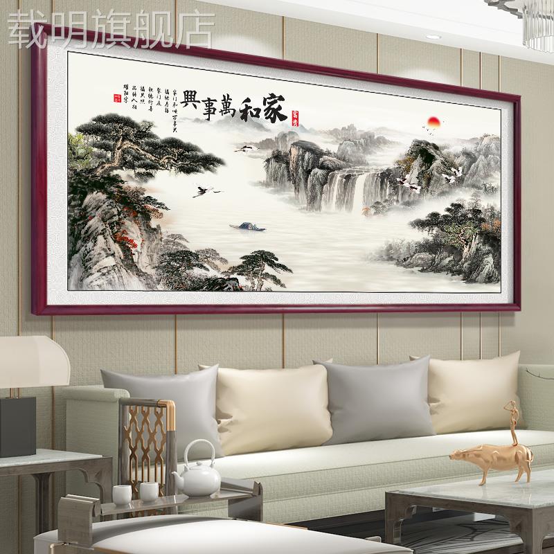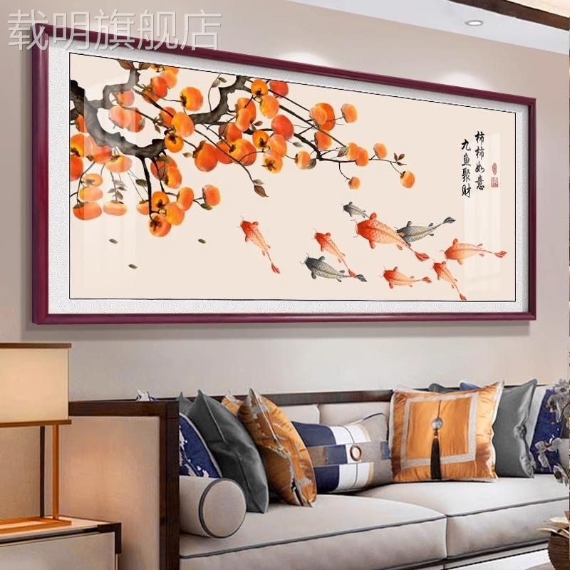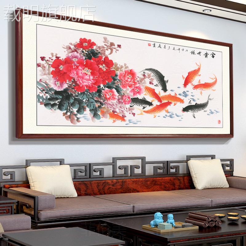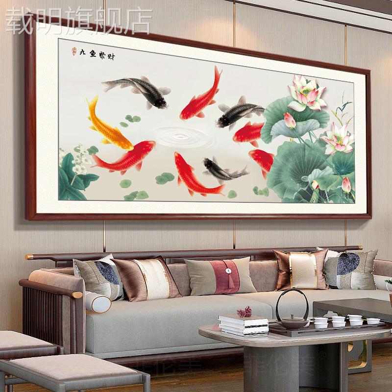 荷花九鱼图客厅挂画家和万事兴沙发背景墙壁装饰壁画中堂画聚财图