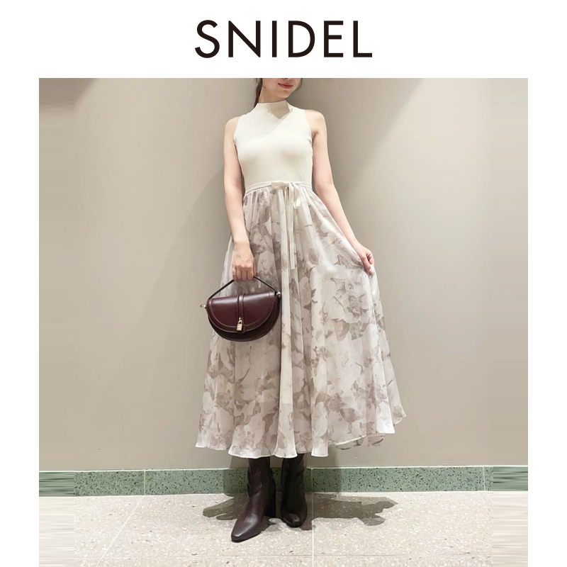SNIDEL2025秋冬新品优雅时尚圆领无袖腰带印花连衣裙SWNO254337