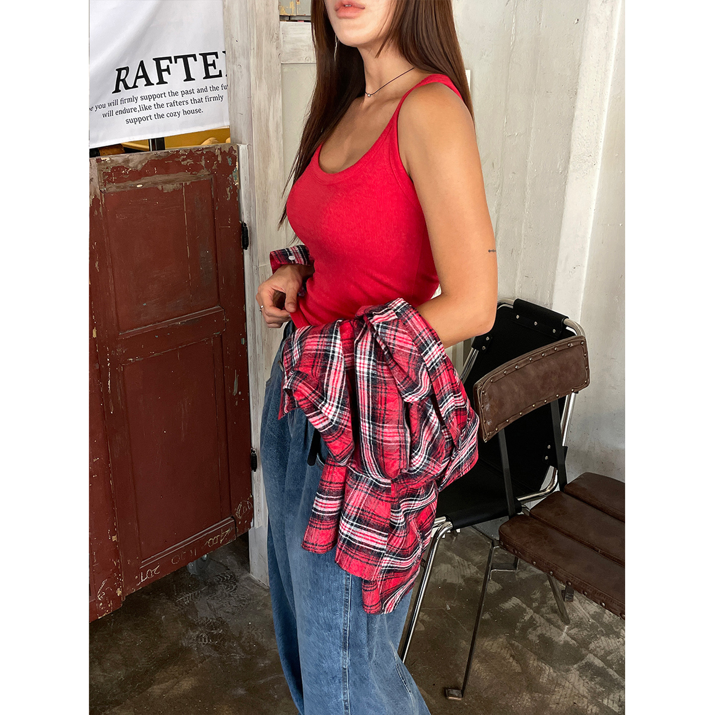 鬼鬼家正品韩代东大门秋 U型领弹力显瘦遮副乳休闲百搭工字背心女