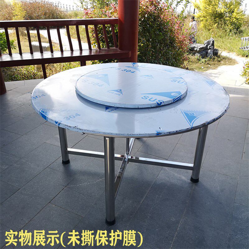 源头厂家不锈钢圆桌带不锈钢转盘折叠桌脚支架大排档工作台面餐桌