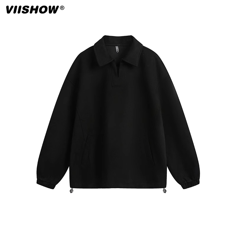 VISHOW美式复古POLO领设计感卫衣男女春季潮牌情侣宽松套头上衣