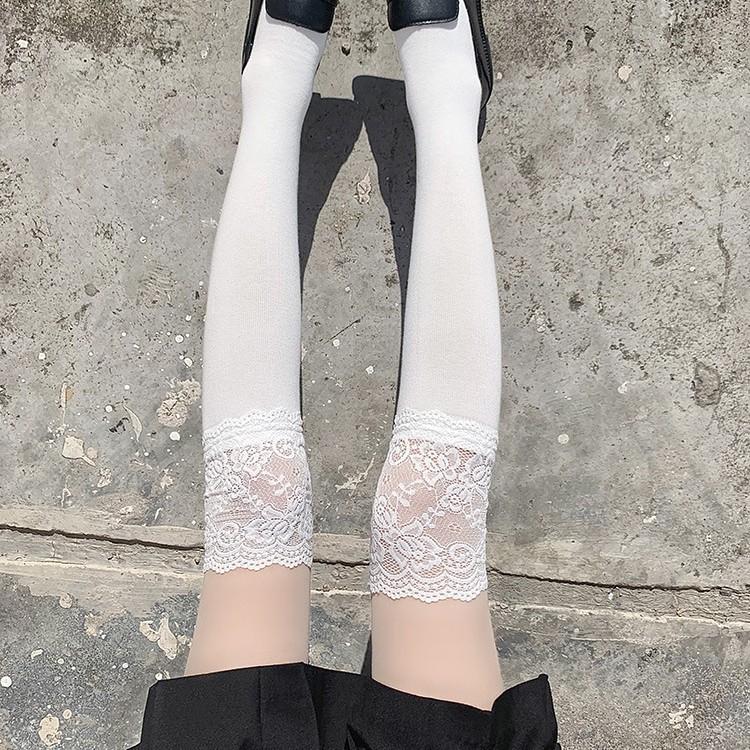 白色蕾丝花边小腿袜女洛丽塔中长筒过膝袜配高筒靴甜美大腿堆堆袜