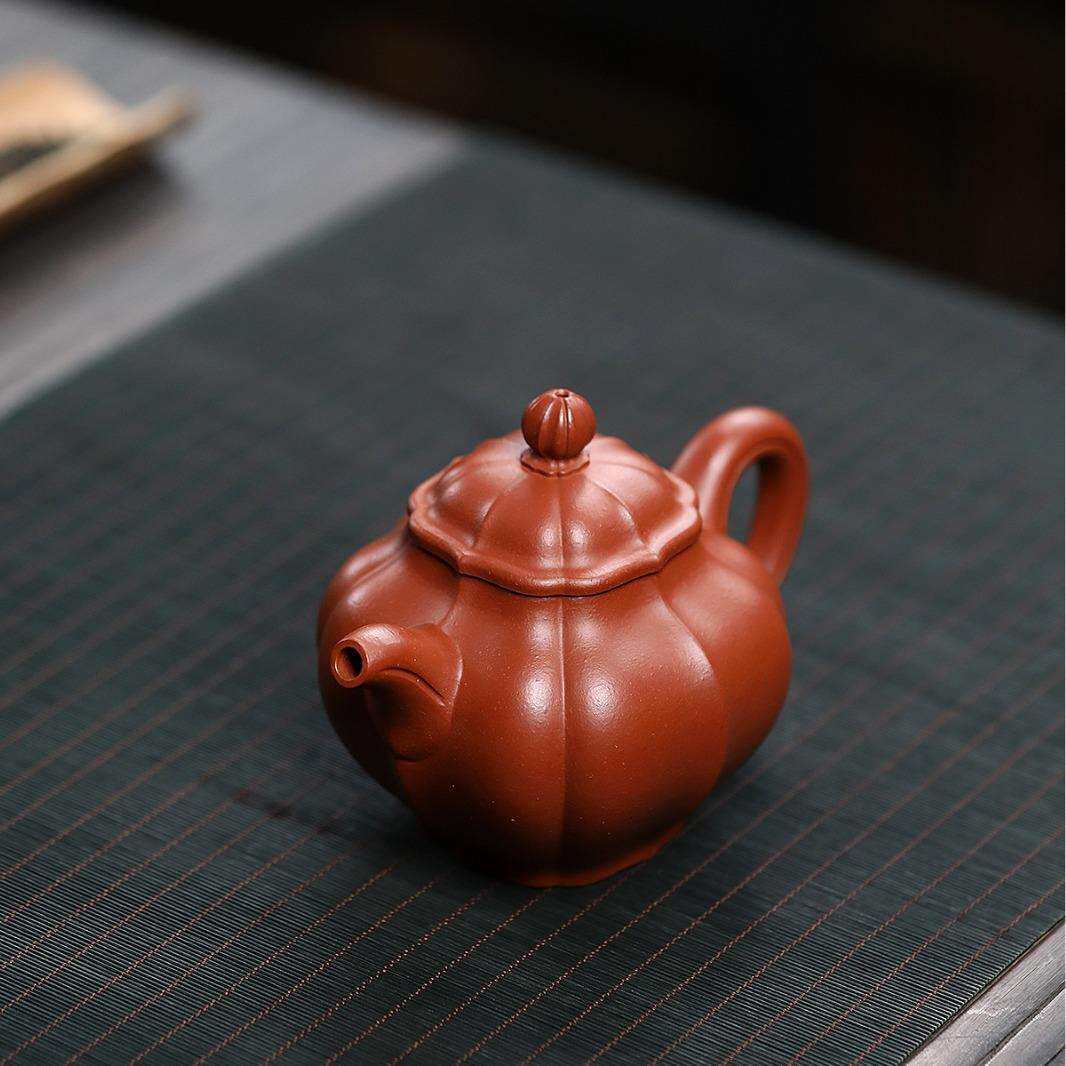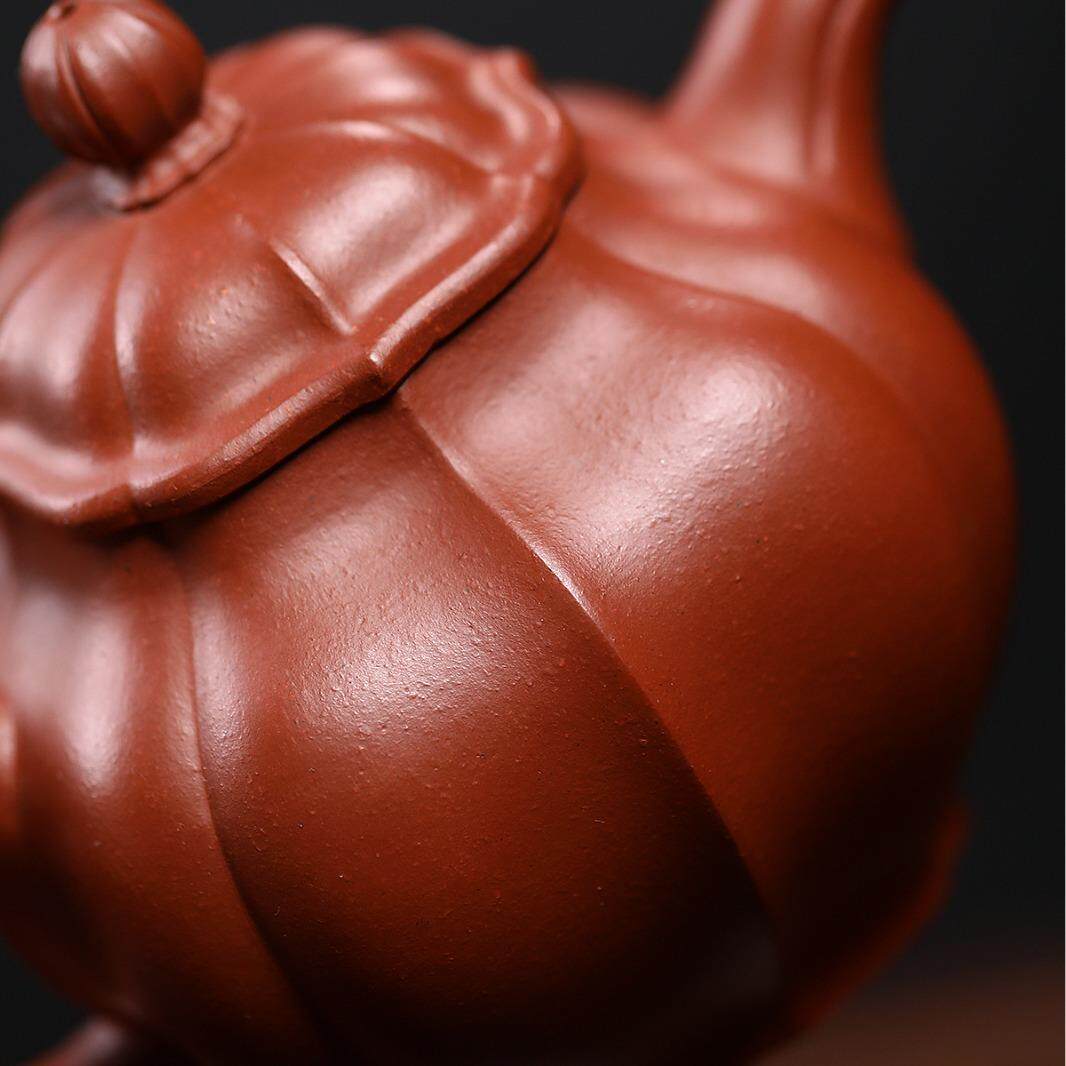 宜兴紫砂原矿朱泥筋纹秋水壶230cc精工大气高档家用茶具