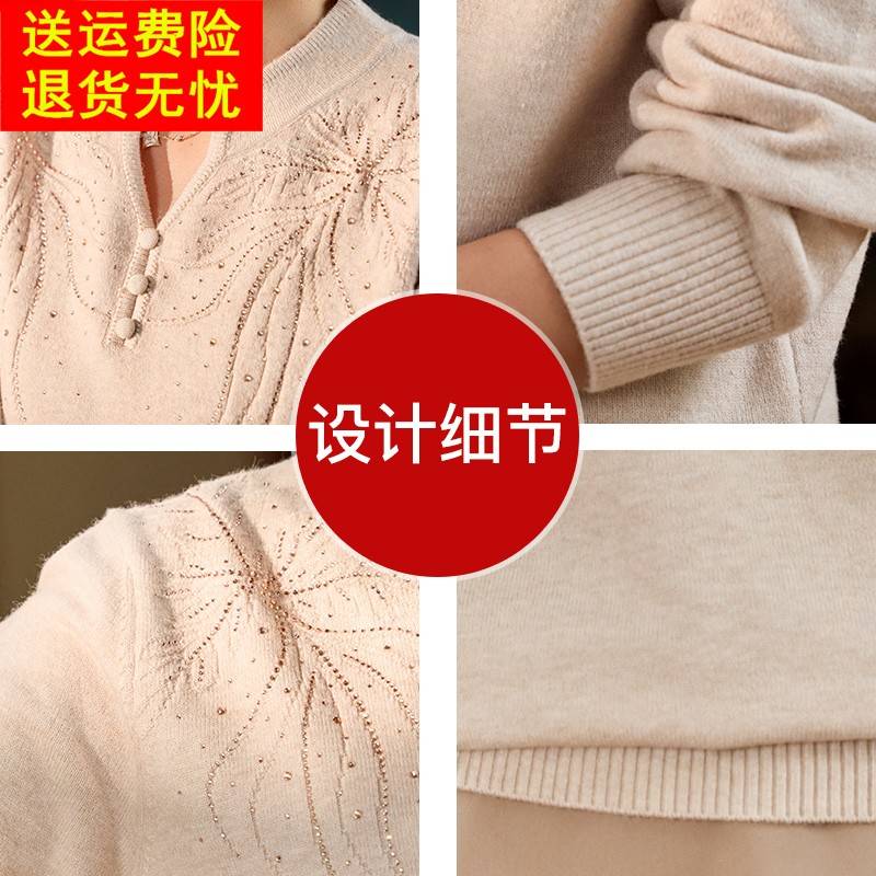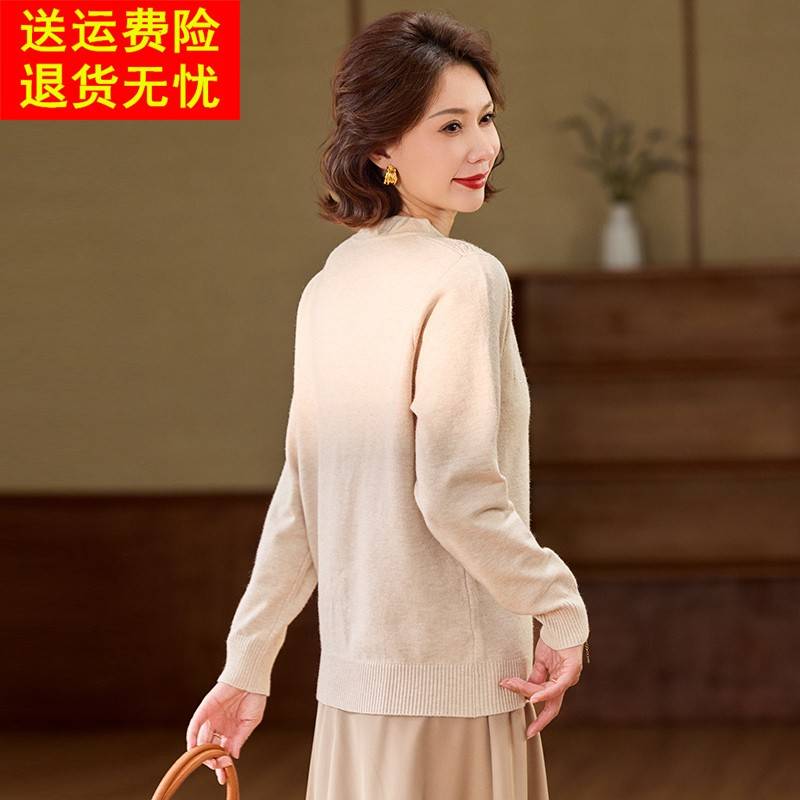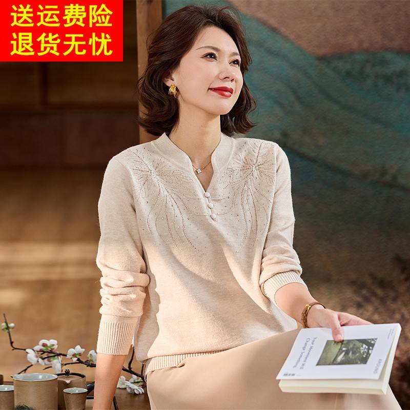 洋气妈妈春装V领针织小衫中年女装打底毛衣薄中老年春秋气质上衣