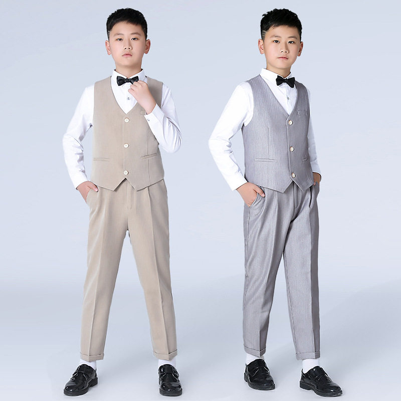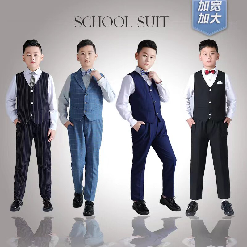 胖童礼服2023新款胖版西装背心三件套装男童加大钢琴主持演出西服