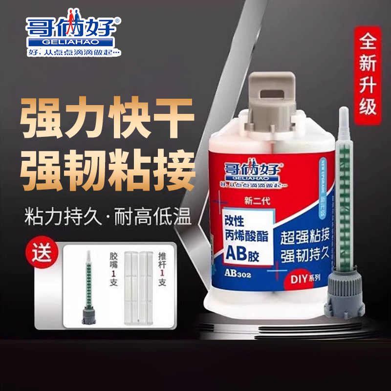 哥俩好ab胶水粘金属专用胶木头木材粘合快干胶石材瓷砖陶瓷修补防水ab胶家用胶新二代强力胶302二合一胶