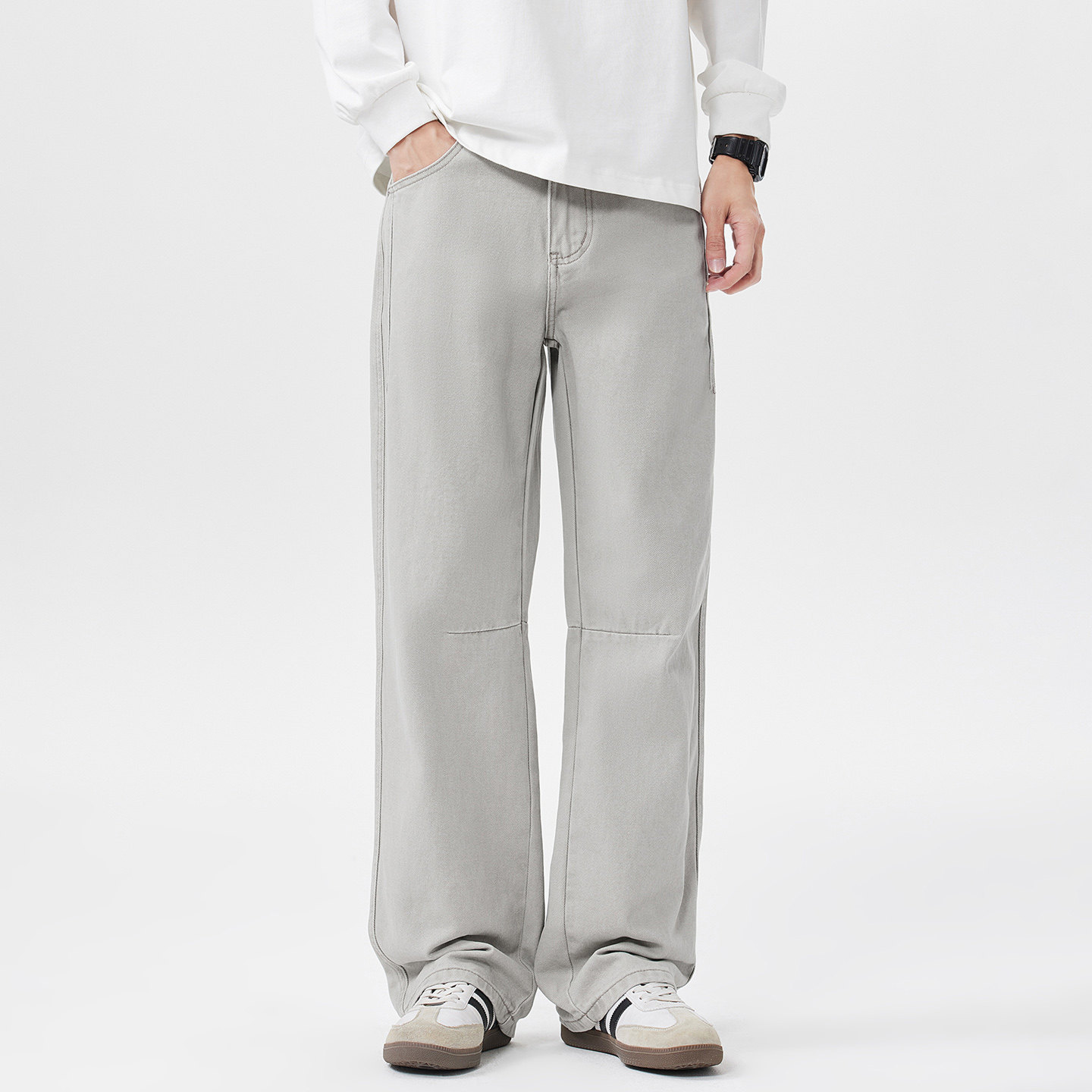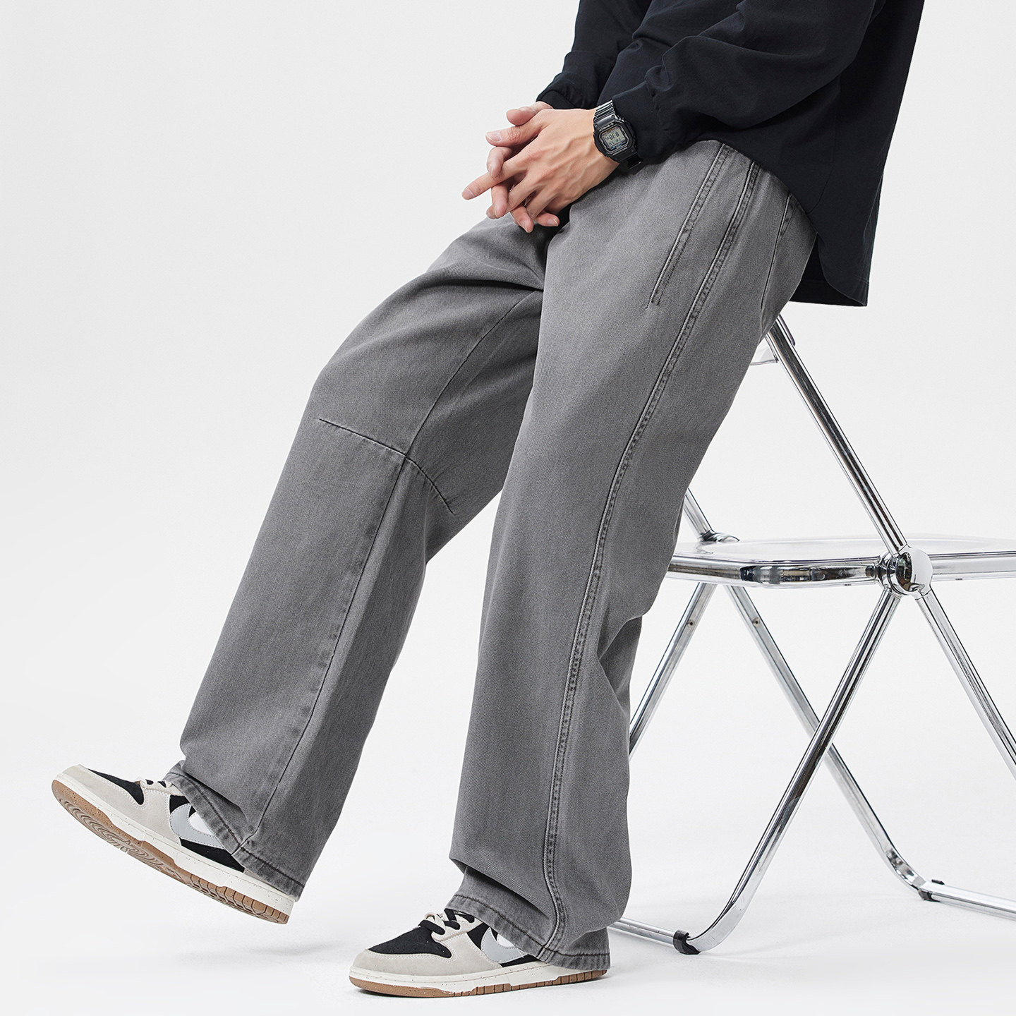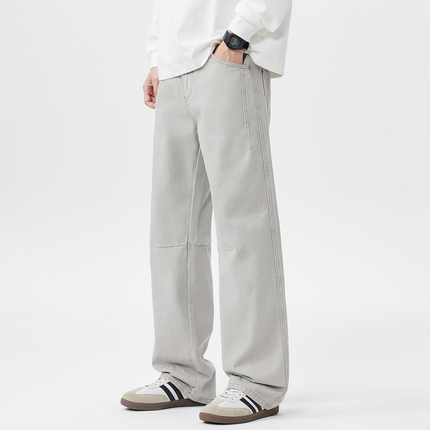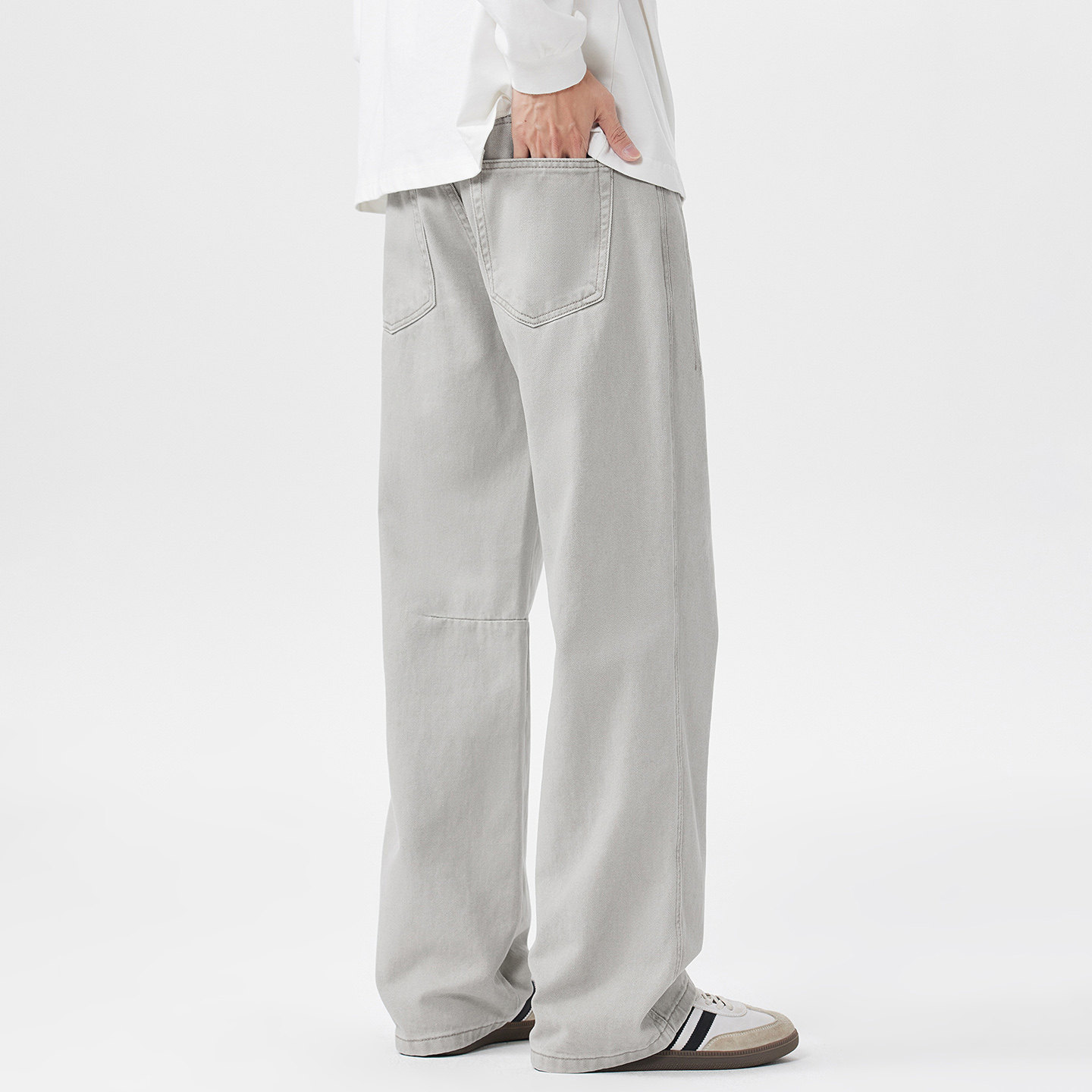 hansca浅色青少年纯棉阔腿牛仔裤男宽松直筒2025新款男秋季长裤子