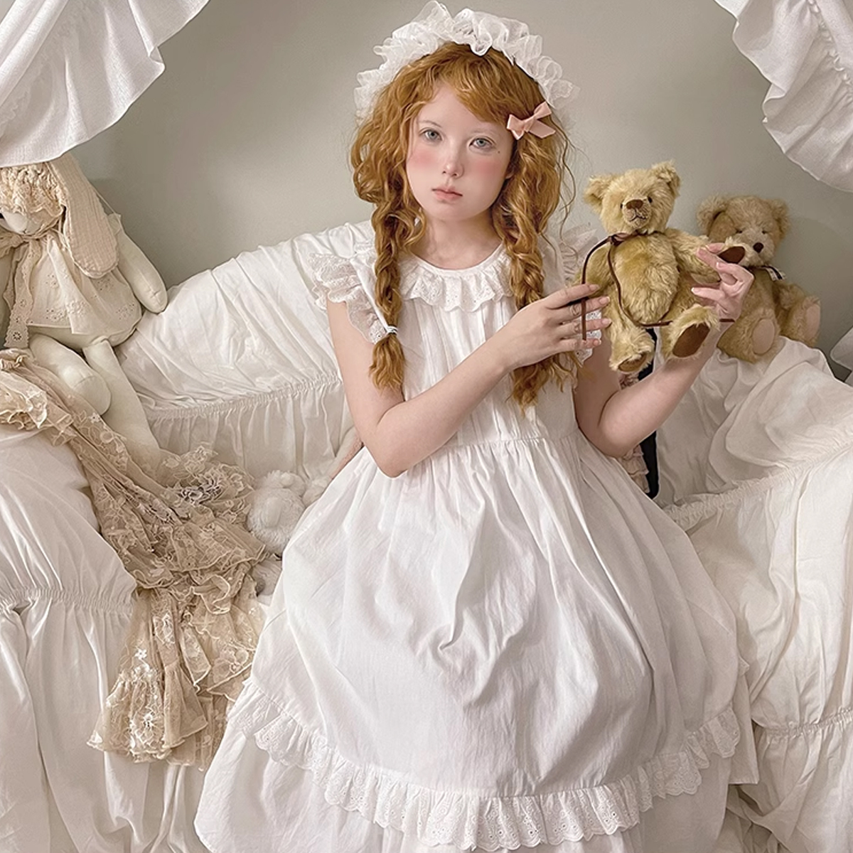 Labeau-天空岛-甜美可爱镂空花边印花背心裙夏a字圆领无袖连衣裙