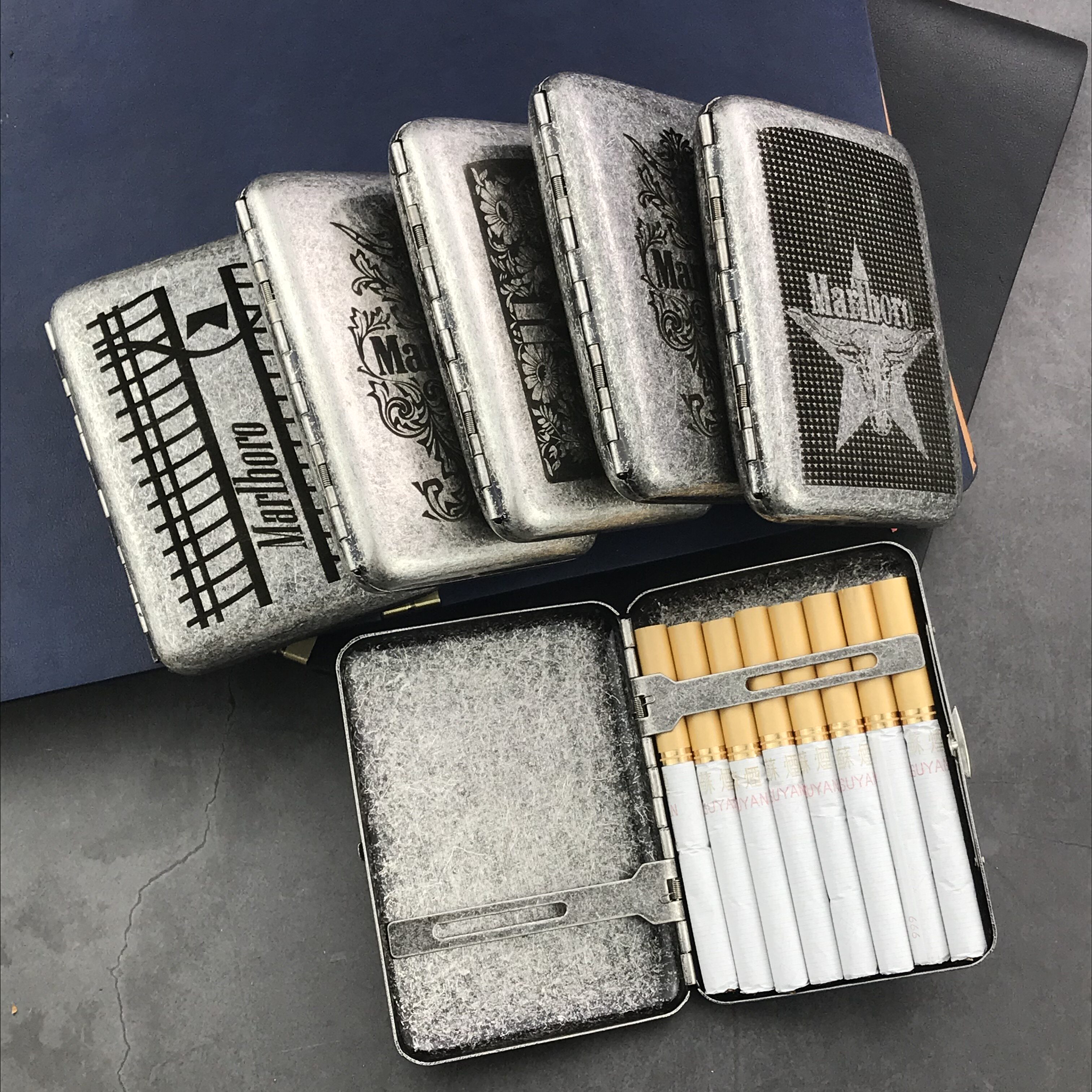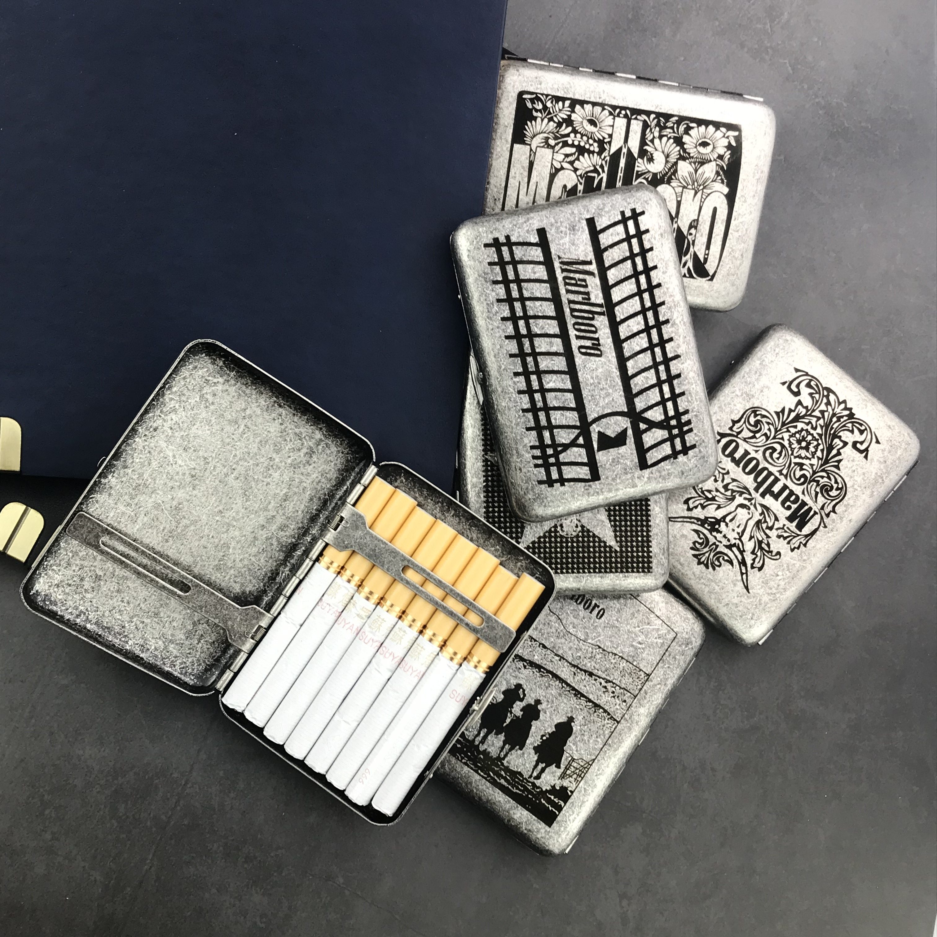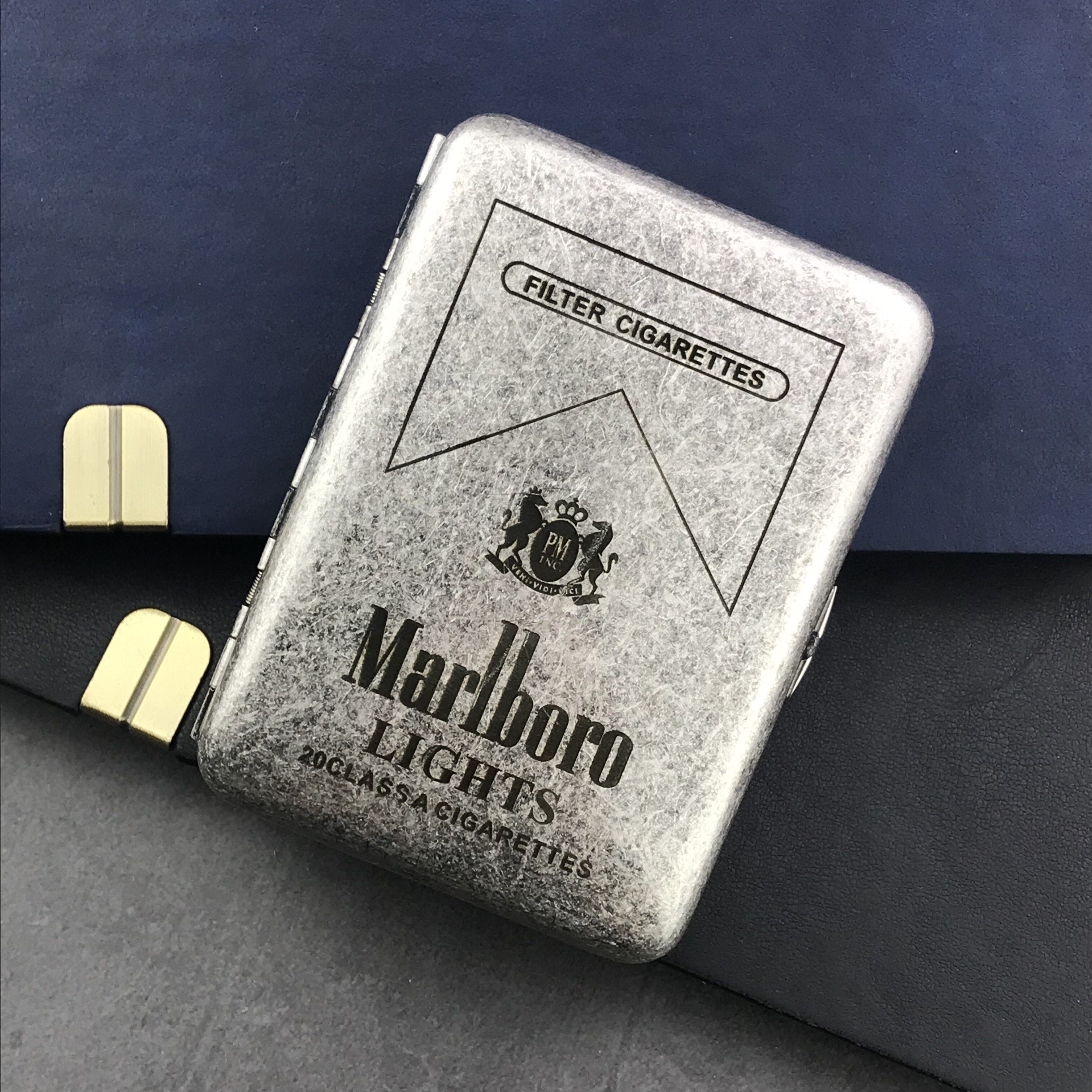 双枪精雕古银复古抗压16支粗烟盒