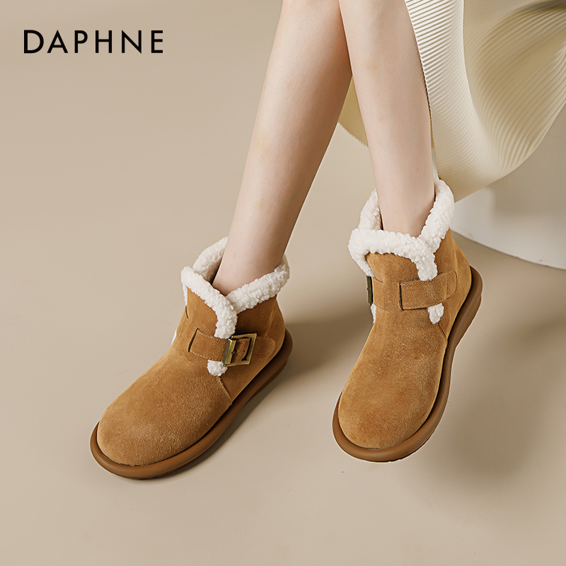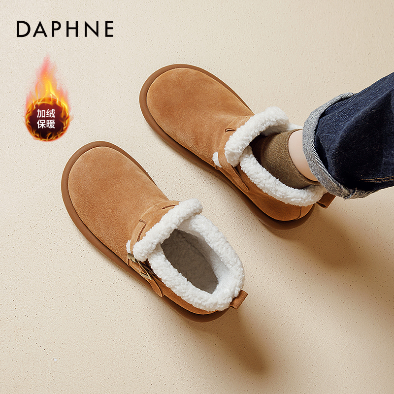 达芙妮平底雪地靴女冬季加绒低帮大头勃肯棉鞋2023保暖丑萌面包鞋