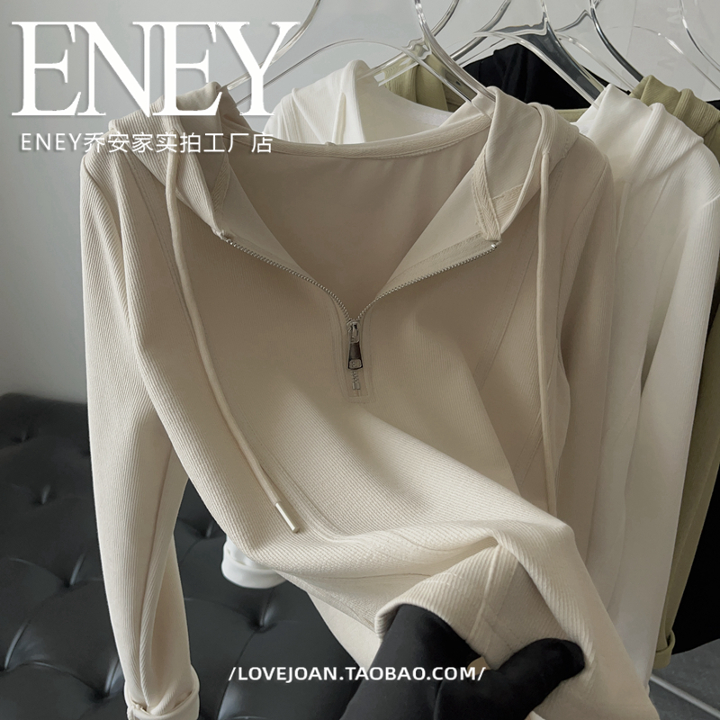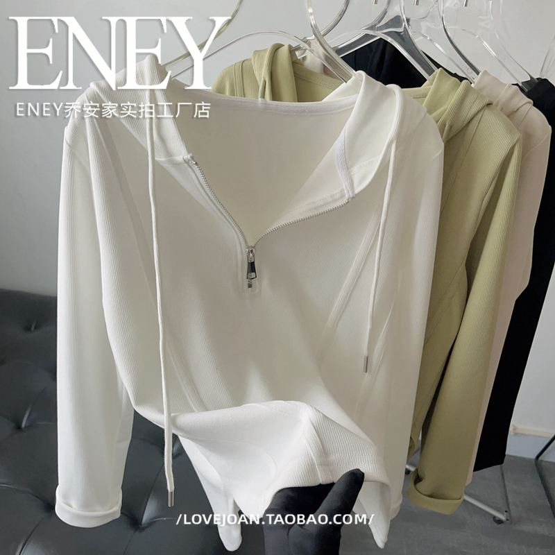 立体分割设计鱼骨卫衣连帽春秋款螺纹长袖T恤上衣休闲小衫微宽松