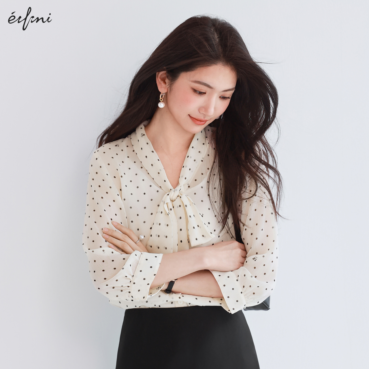 伊芙丽outlets店法式优雅波点衬衫春夏防走光设计衬衣小上衣女