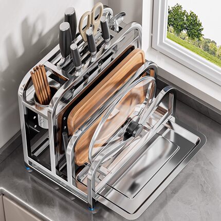 304不锈钢厨房刀架置物架多功能砧板菜板放置架子刀具收纳架一体