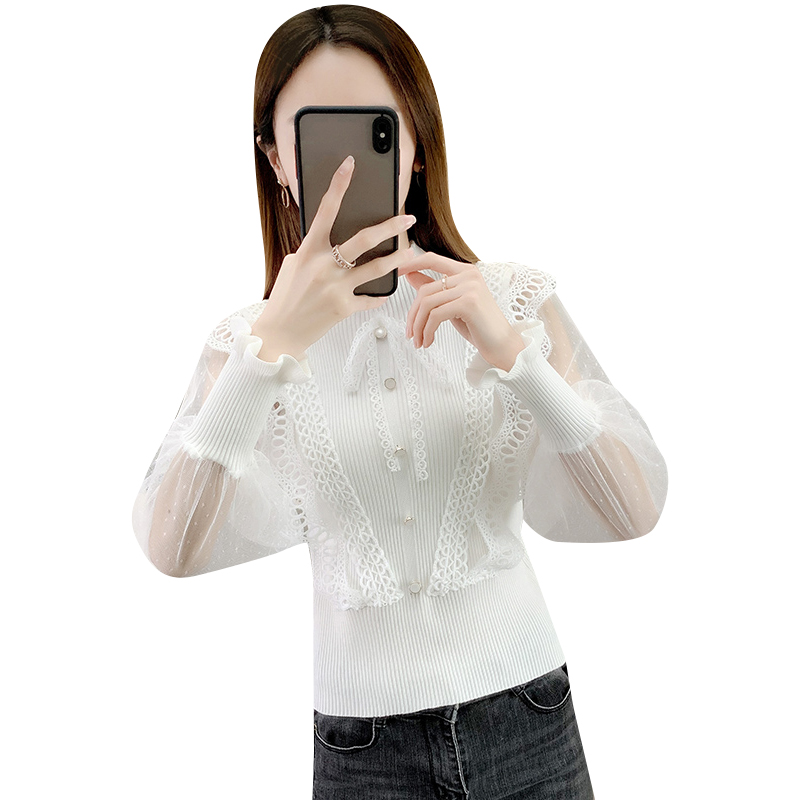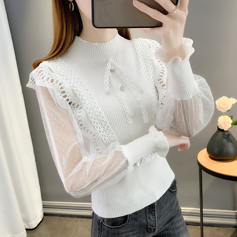 半高领蕾丝长袖针织衫