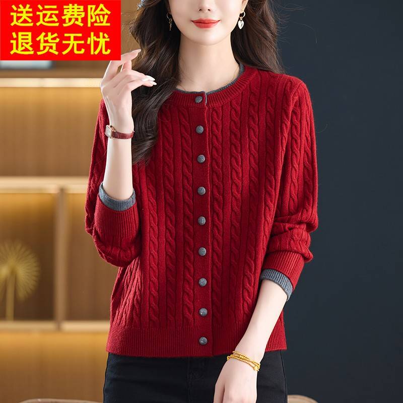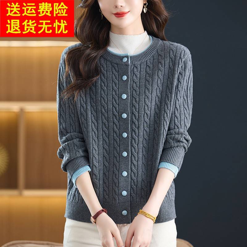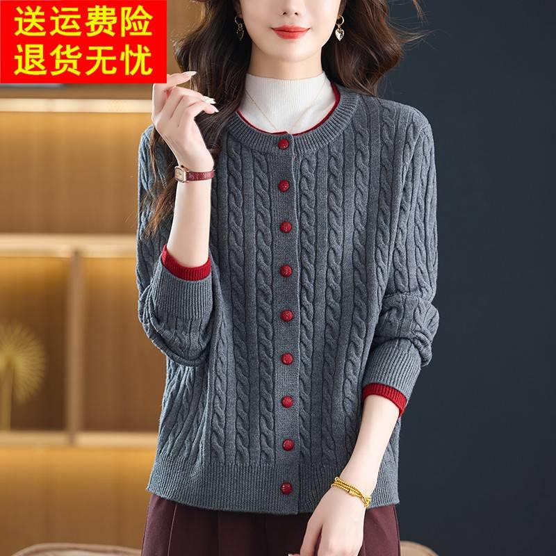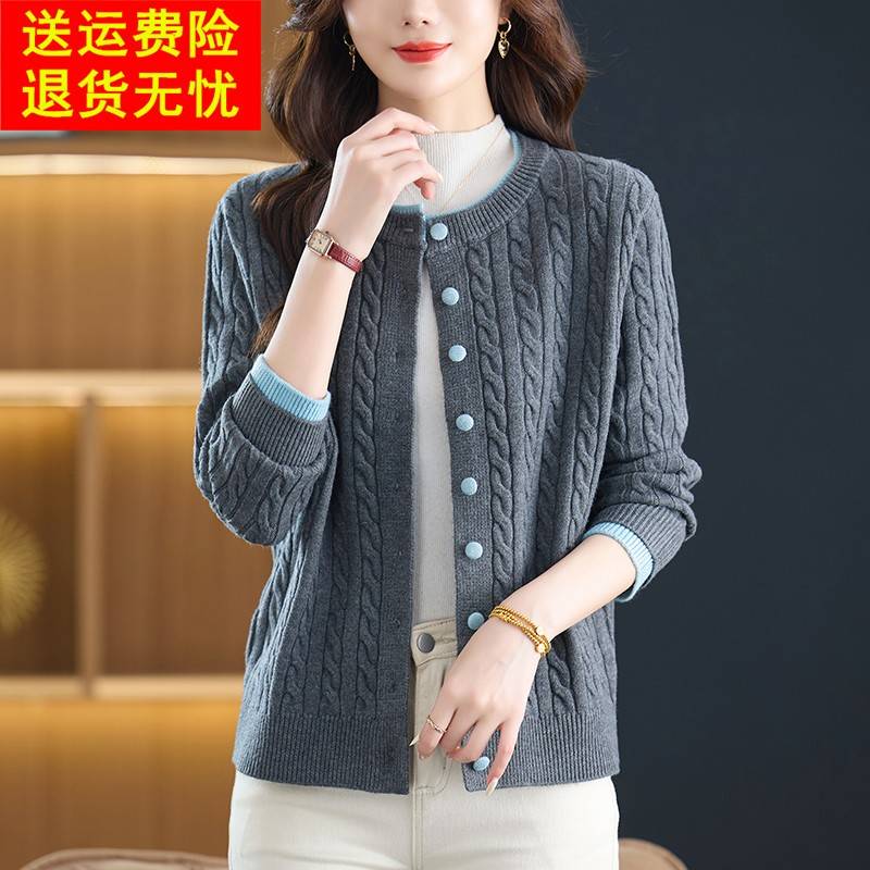 针织开衫外套女士毛衣春秋季新款妈妈小个子时尚显瘦上衣宽松洋气