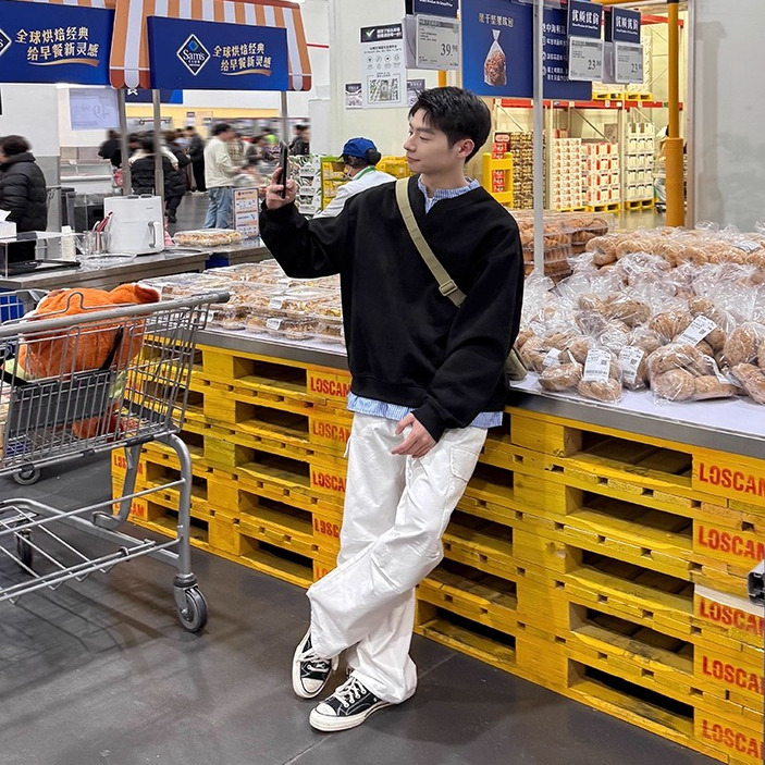 日系黑色假两件长袖卫衣男女2025新款春秋季宽松套头上衣休闲衬衫
