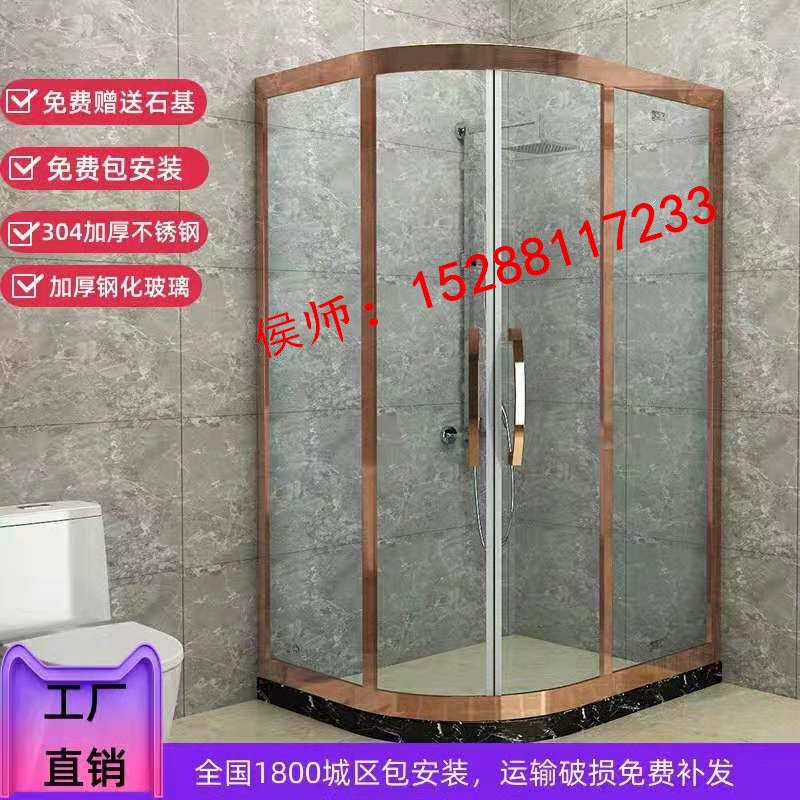 昆明淋浴房一字浴室卫生间干湿分离玻璃隔断移门不锈钢沐浴房屏风