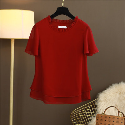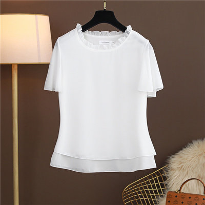 圆领妈妈宽松百搭遮肚子雪纺衫
