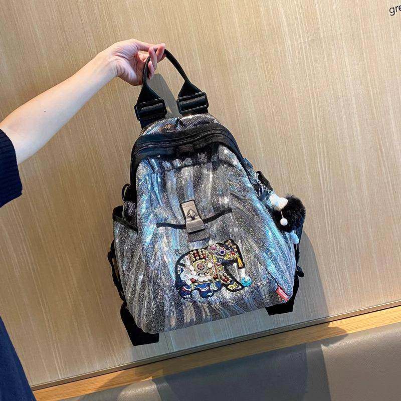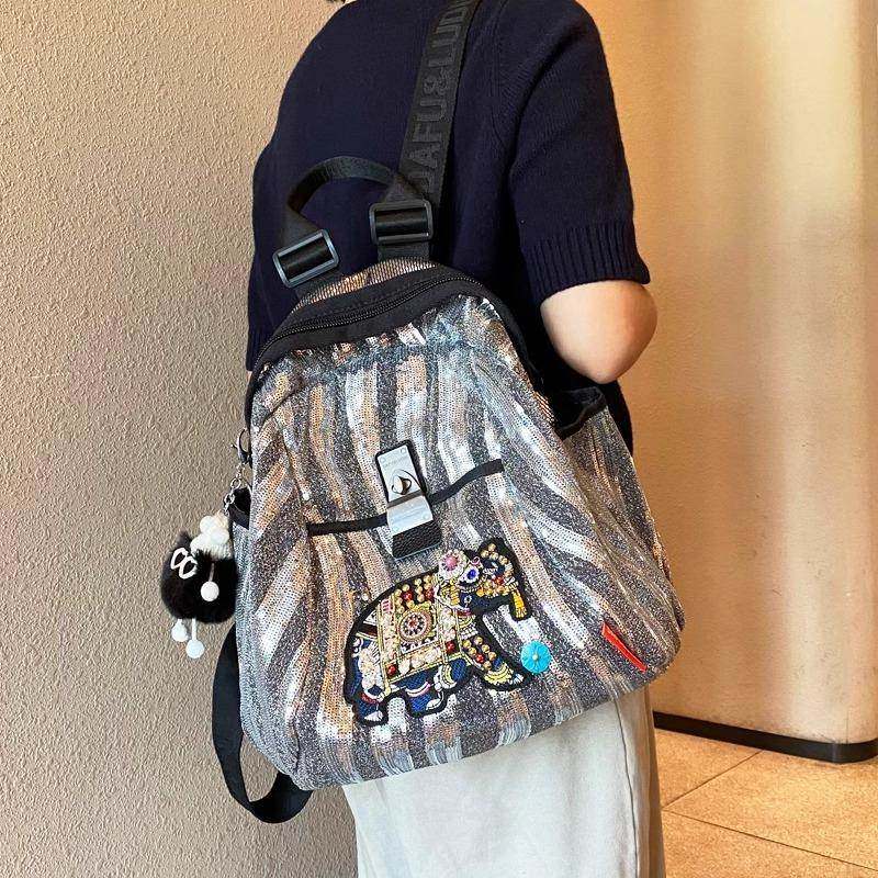 香港双肩包女2025新款时尚刺绣旅行揹包大容量休闲 亮片女士书包