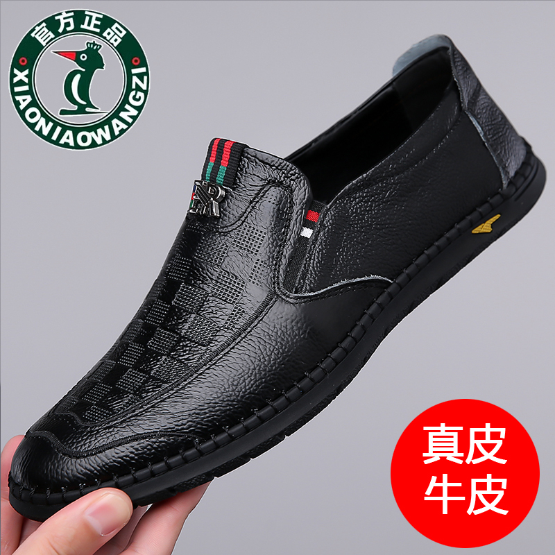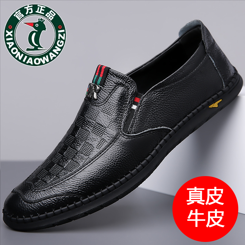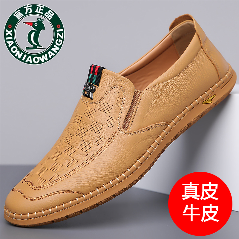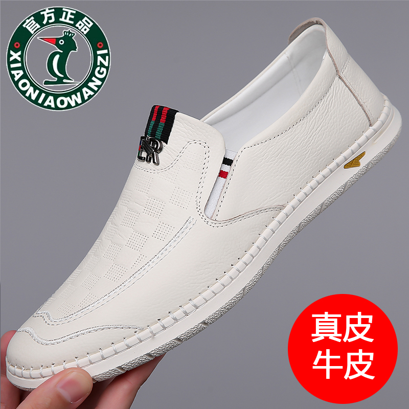 欧伦啄木鸟新款透气真皮男士休闲皮鞋牛皮软底小白鞋爸爸鞋一脚蹬