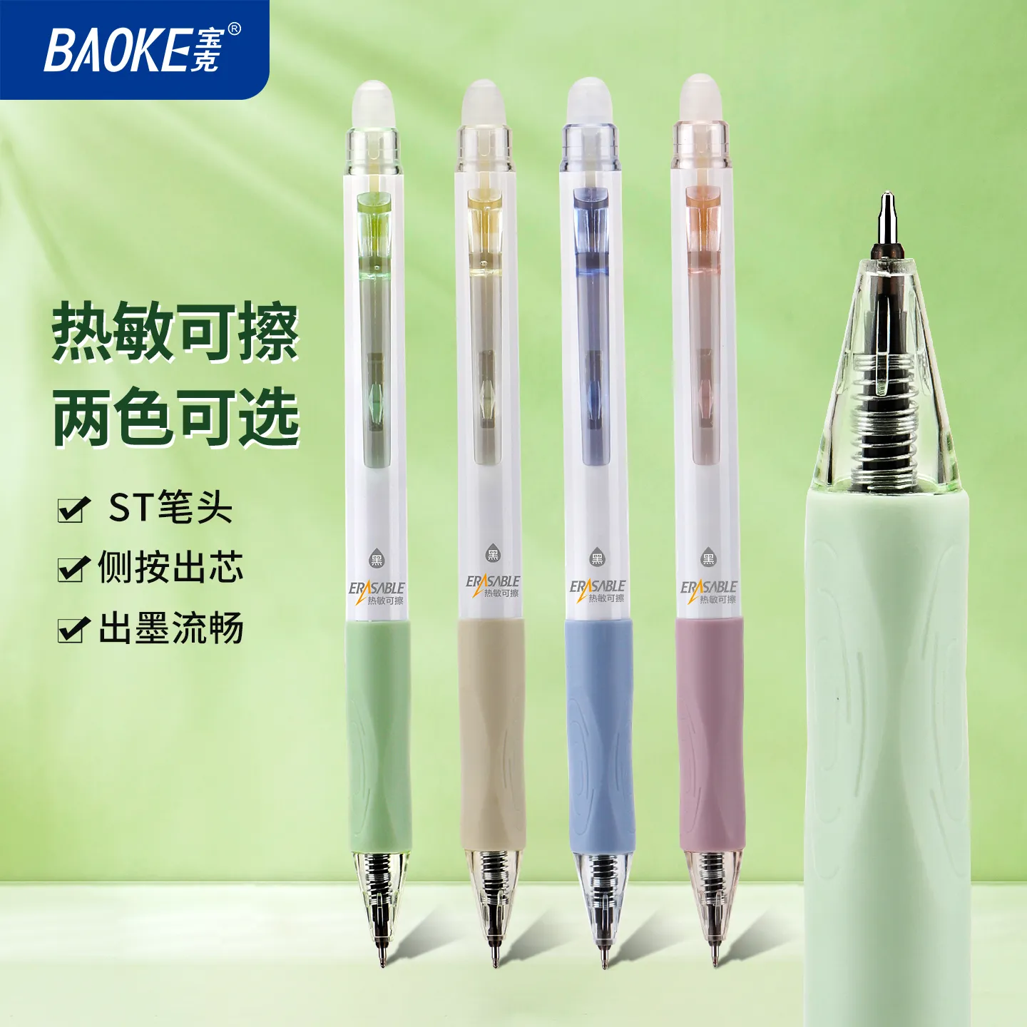宝克小学生热可擦中性笔按动式书写流畅ST笔头0.5签字笔黑色晶蓝
